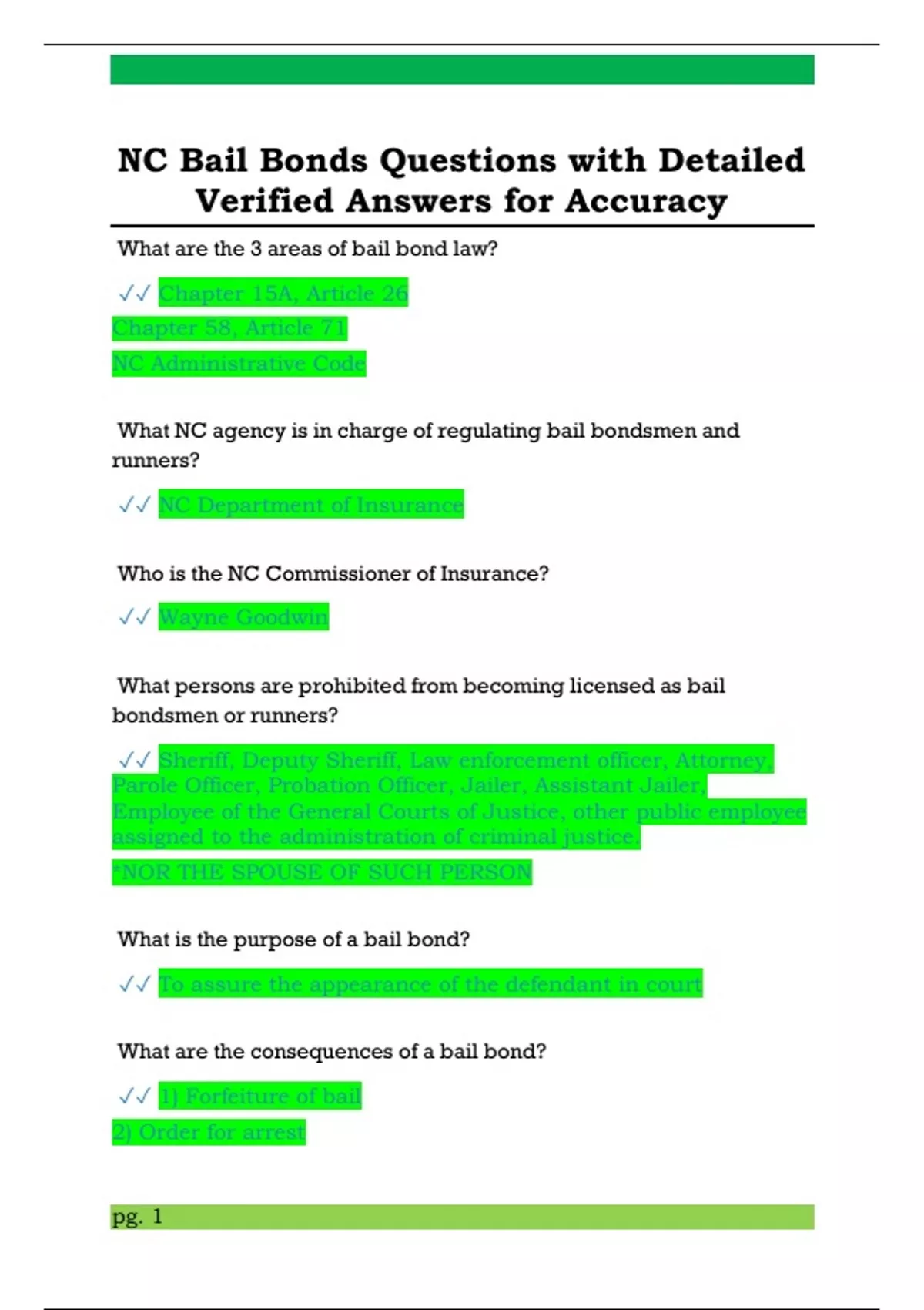 NC Bail Bonds Questions with Detailed Verified Answers for AccuracyNC Bail Bonds Questions with Detailed Verified Answers for Accuracy