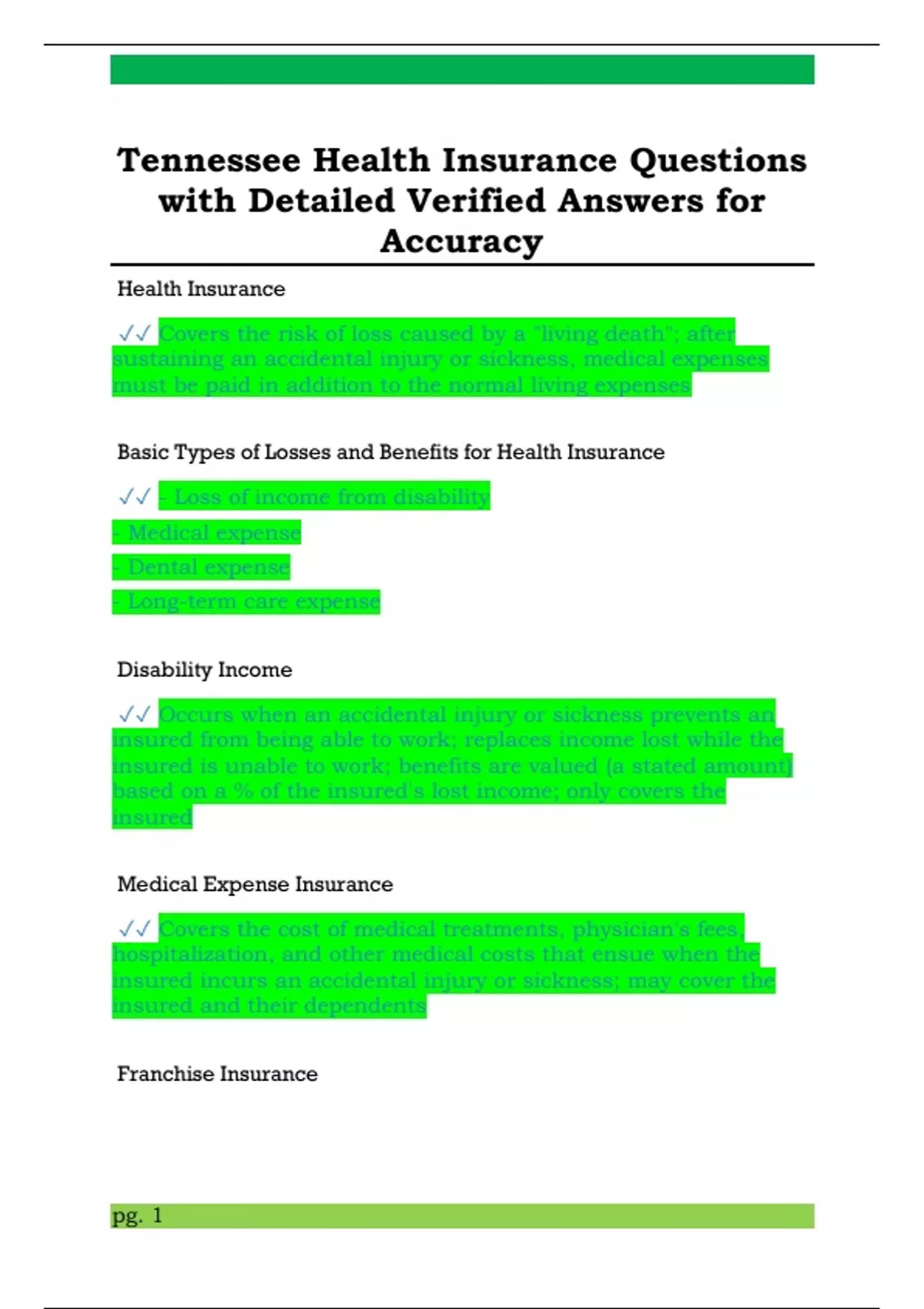 Basic Types of Losses and Benefits for Health Insurance