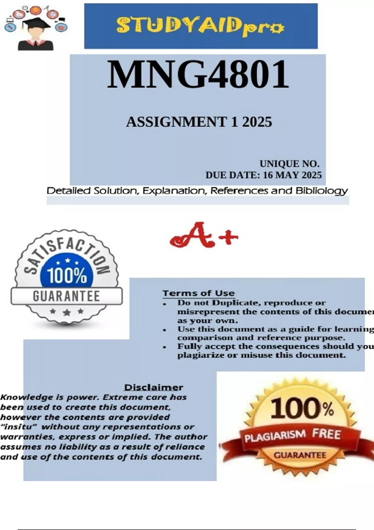 MNG4801 Assignment 1 2025 ;100% TRUSTED workings with detailed Answers for A+ Grade.