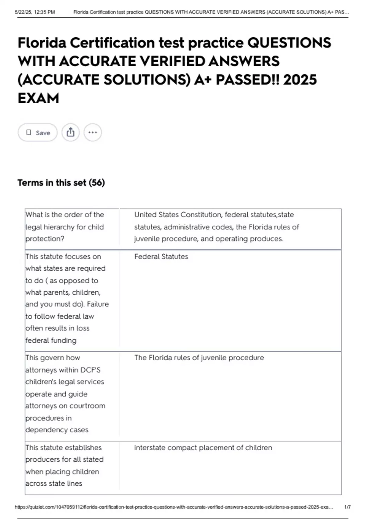 5/22/25, 12:35 PM Florida Certification test practice QUESTIONS WITH ACCURATE VERIFIED ANSWERS (ACCURATE SOLUTIONS) A+ PAS…