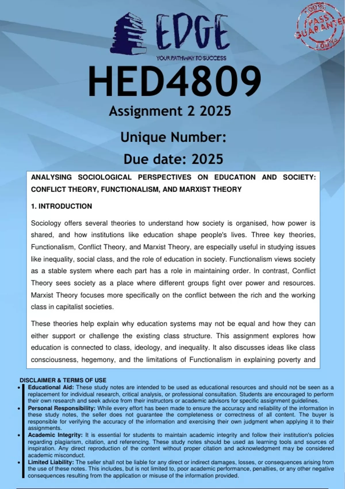 Well-structured HED4809 Assignment 2 (ANSWERS) 2025 - DISTINCTION GUARANTEED. (DETAILED ANSWERS - DISTINCTION GUARANTEED!).....