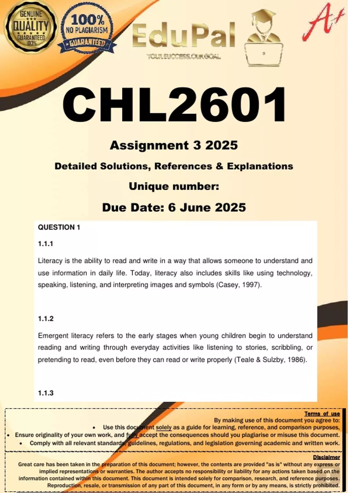 Ensure originality of your own work, and fully accept the consequences should you plagiarise or misuse this document.