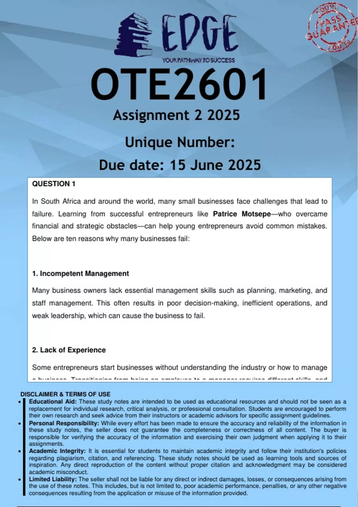 Educational Aid: These study notes are intended to be used as educational resources and should not be seen as a