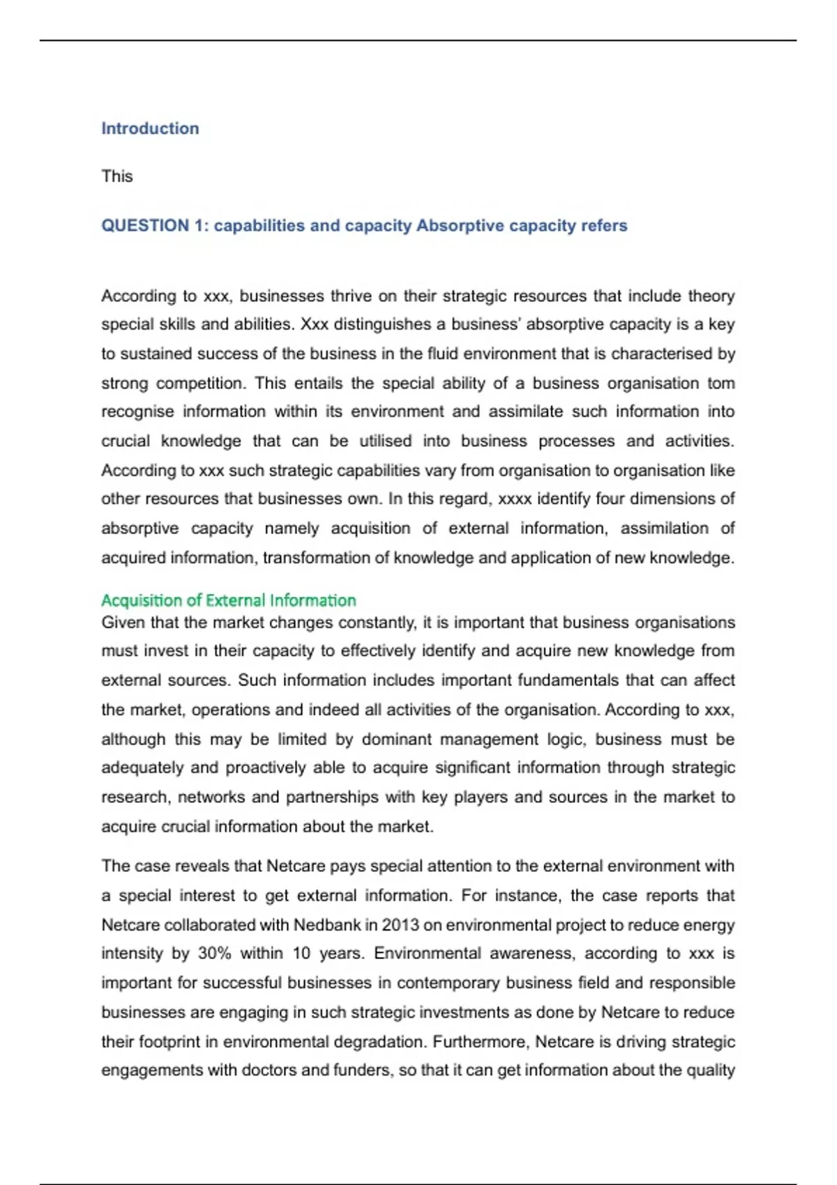 QUESTION 1: capabilities and capacity Absorptive capacity refers