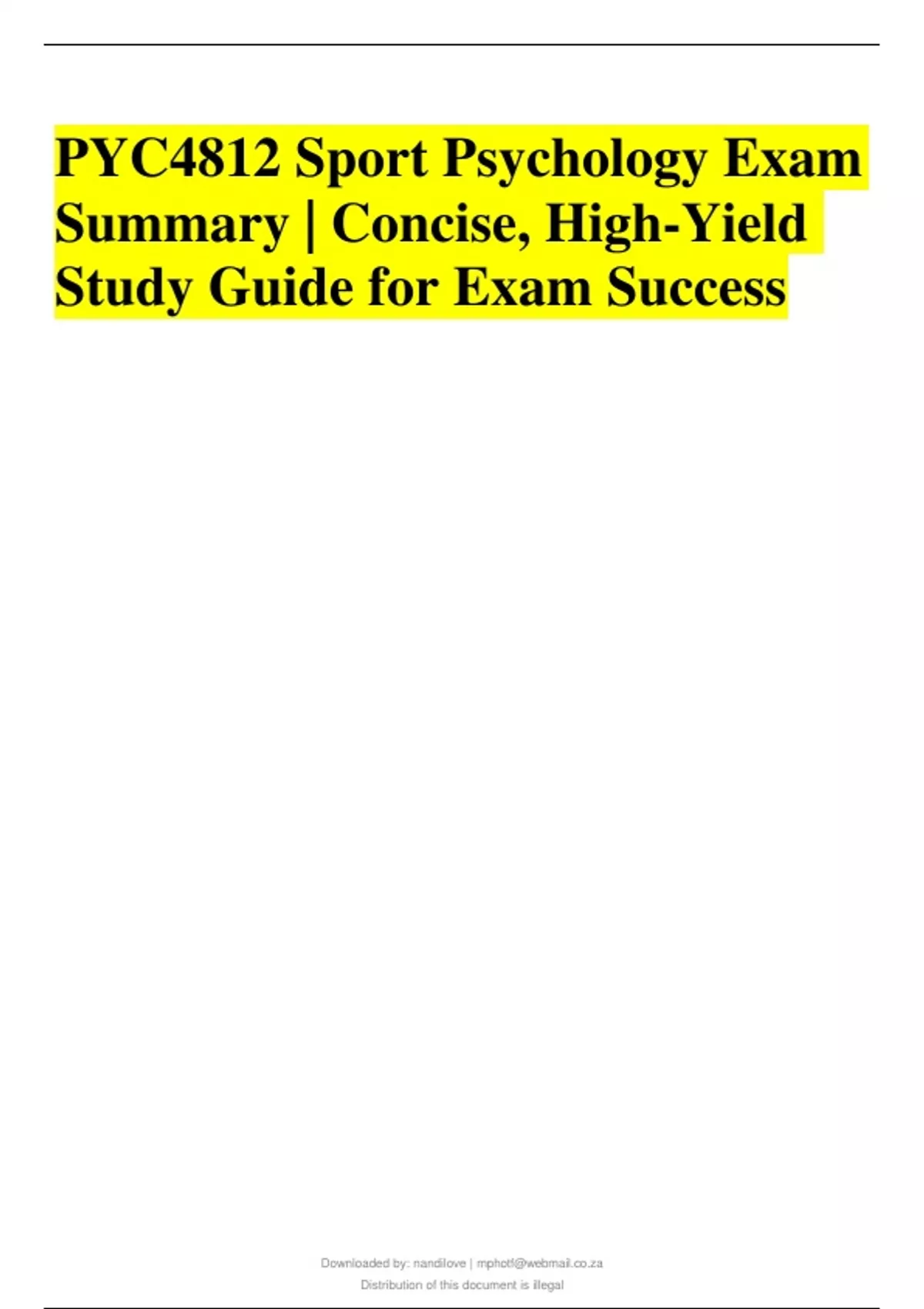 PYC4812 Sport Psychology Exam Summary | Concise, High-Yield Study Guide for Exam Success