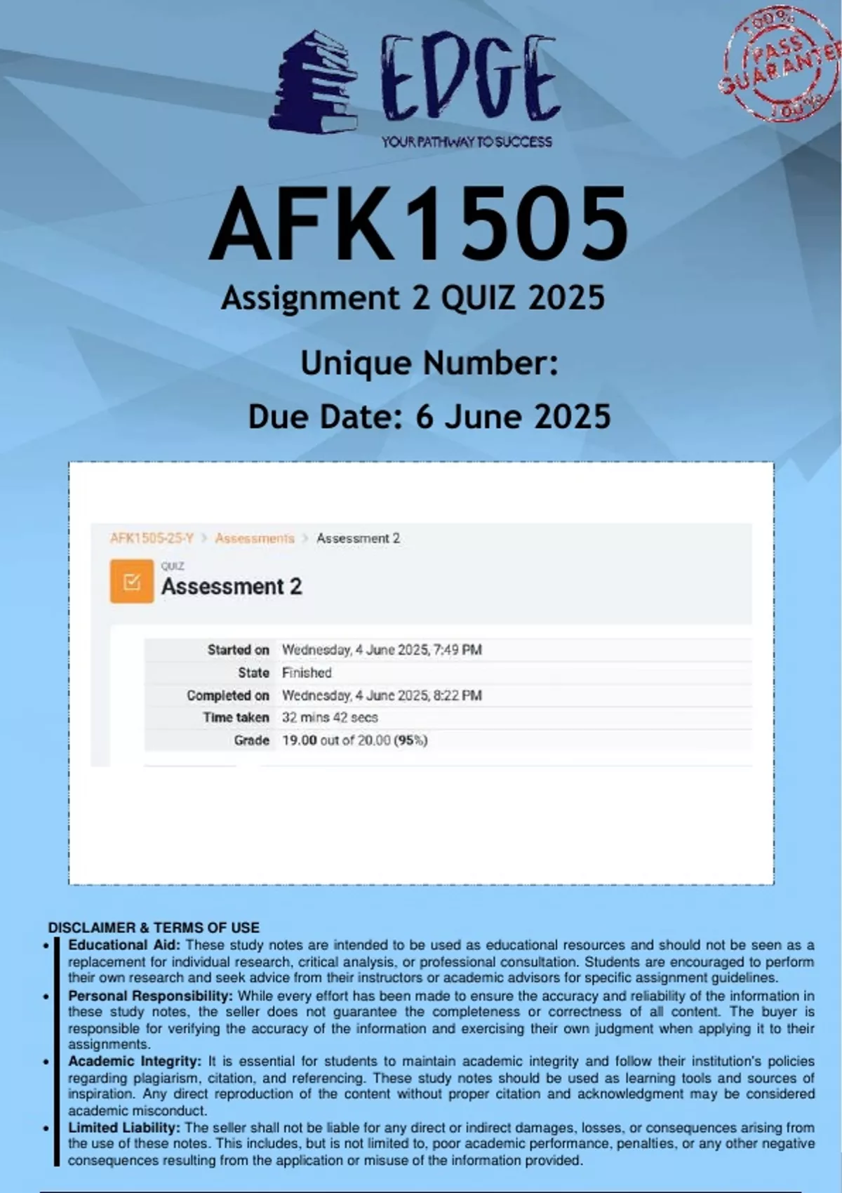 Well-structured AFK1505 Assignment 2 (ANSWERS) 2025 - DISTINCTION GUARANTEED. (DETAILED ANSWERS - DISTINCTION GUARANTEED!).....