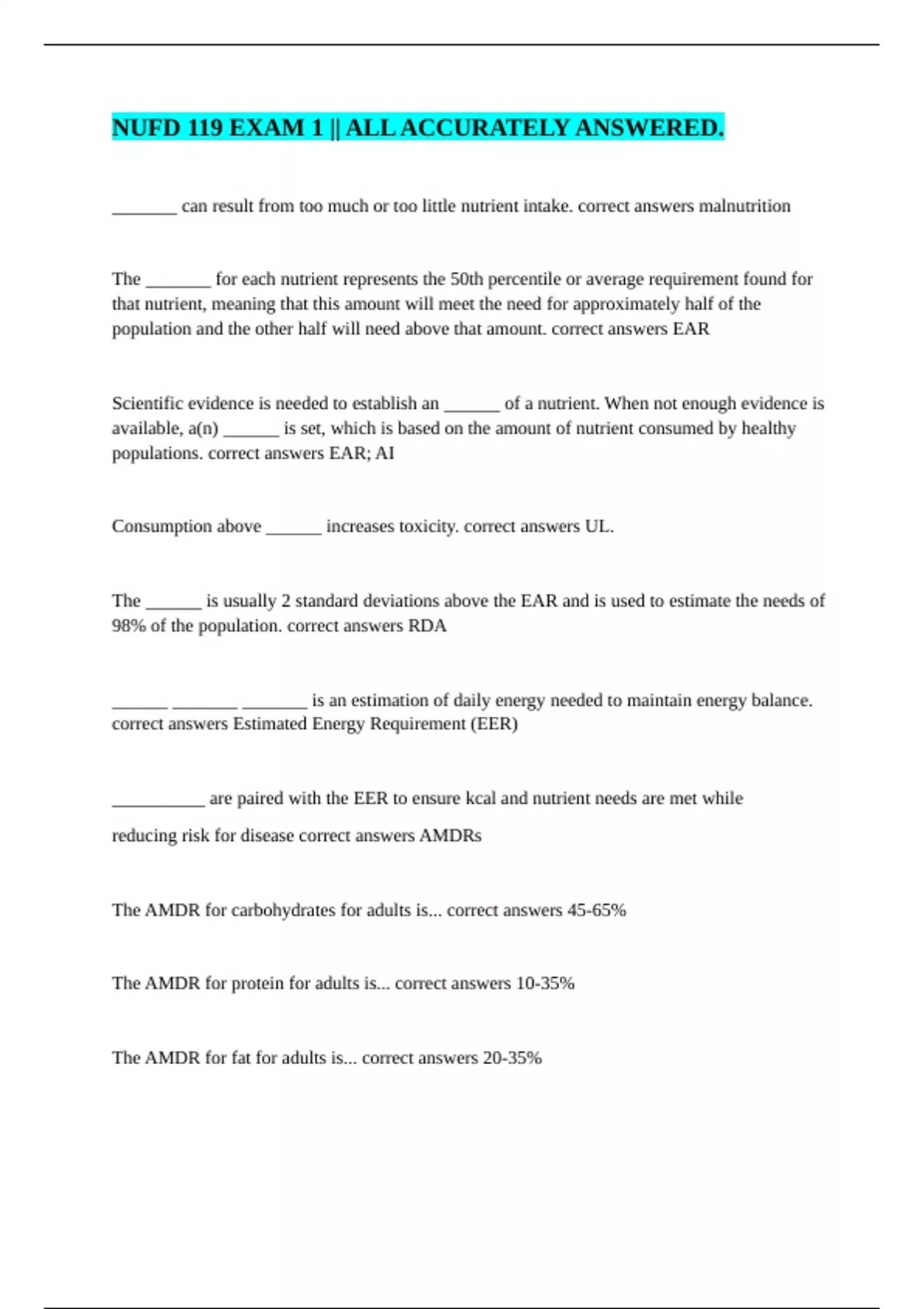 The AMDR for carbohydrates for adults is... correct answers 45-65%