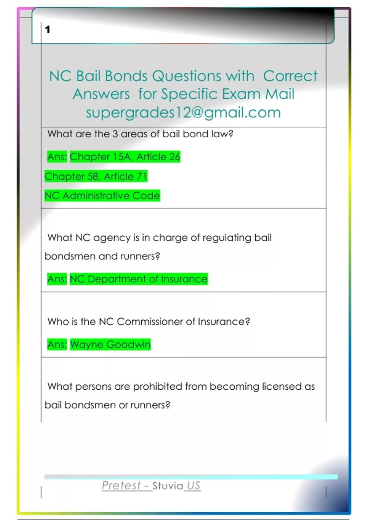 NC Bail Bonds Questions with Correct