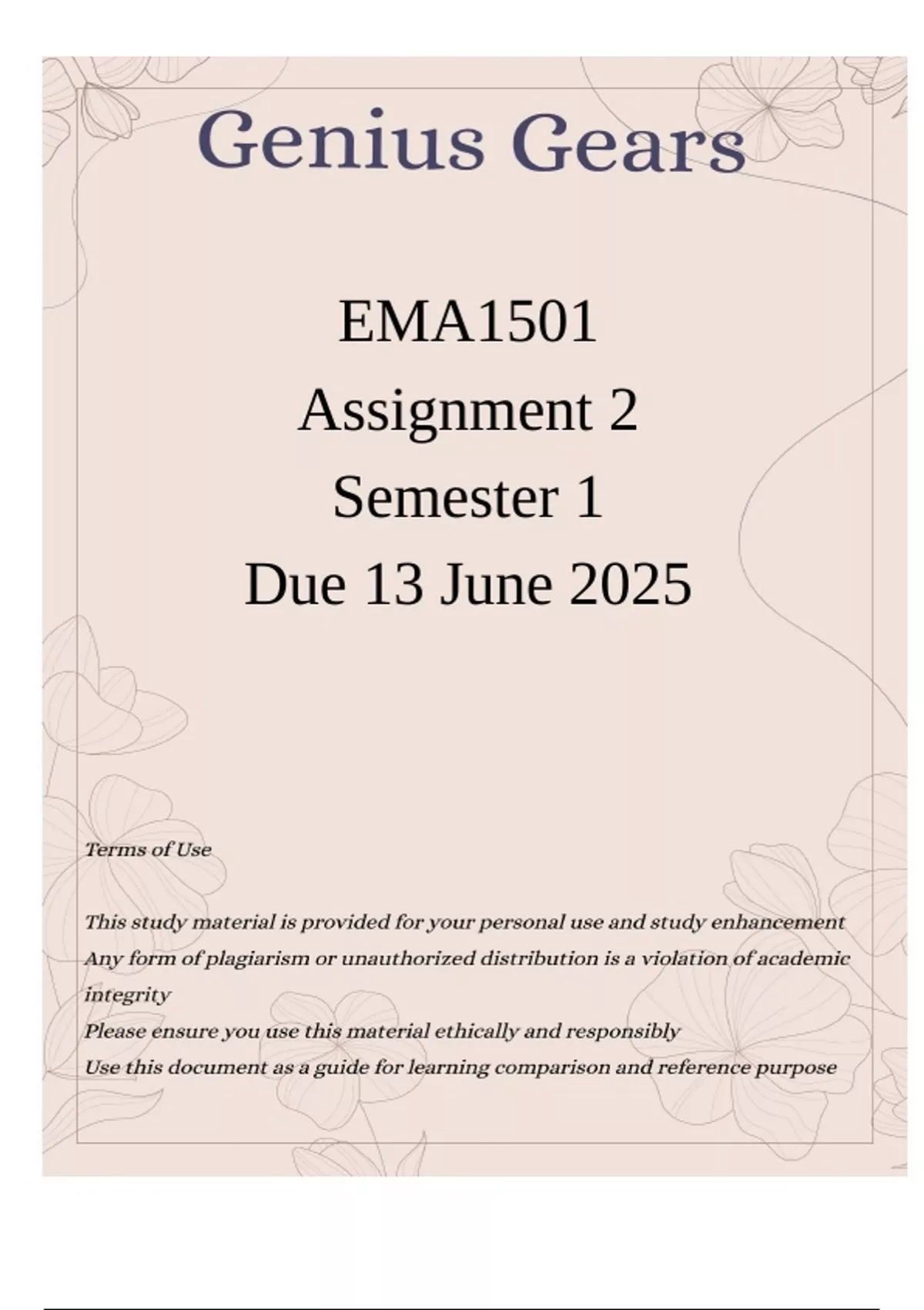 EMA1501 Assignment 2 Semester 1 Due 13 June 2025
