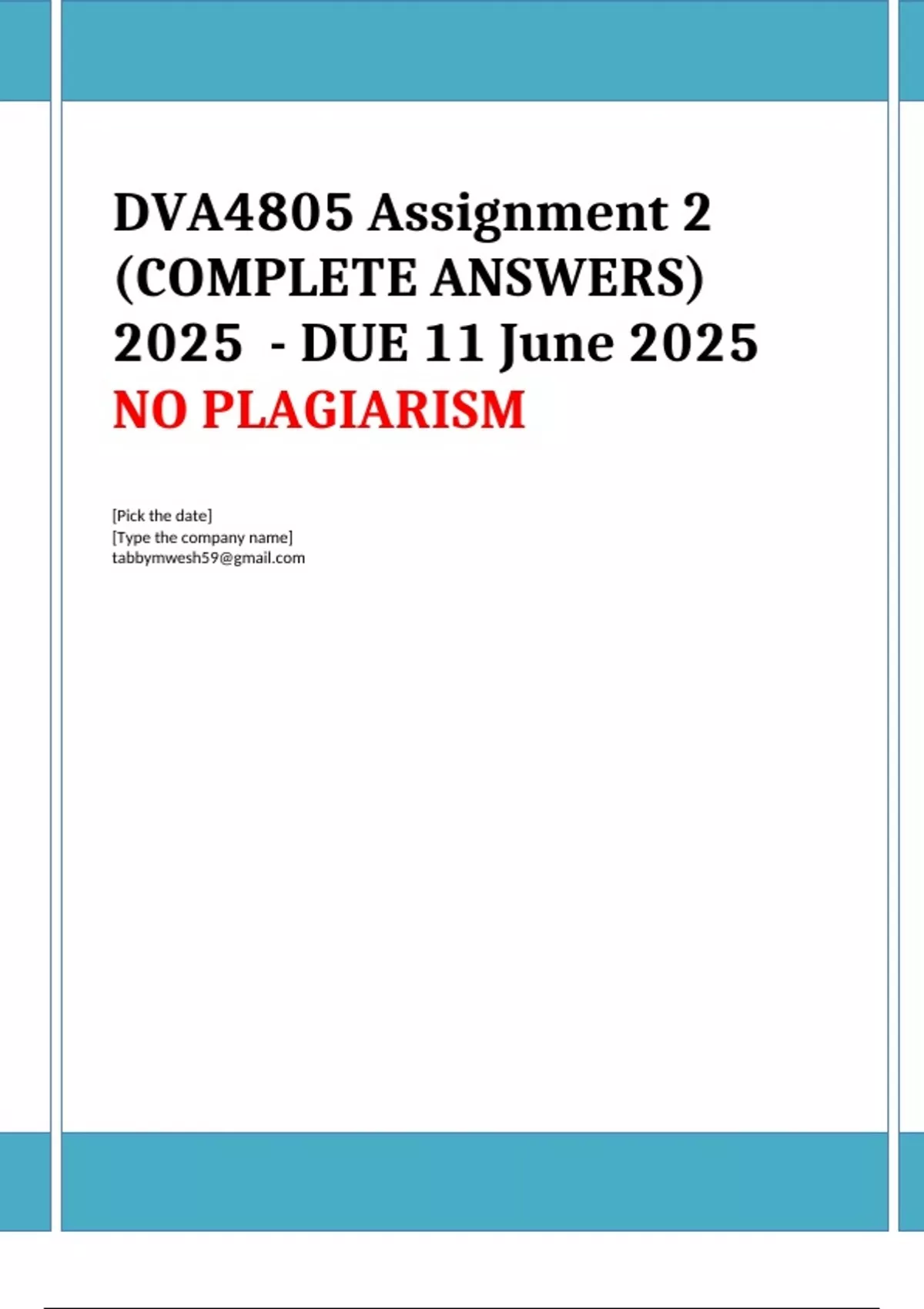 DVA4805 Assignment 2 (DETAILED ANSWERS) 2025 - DISTINCTION