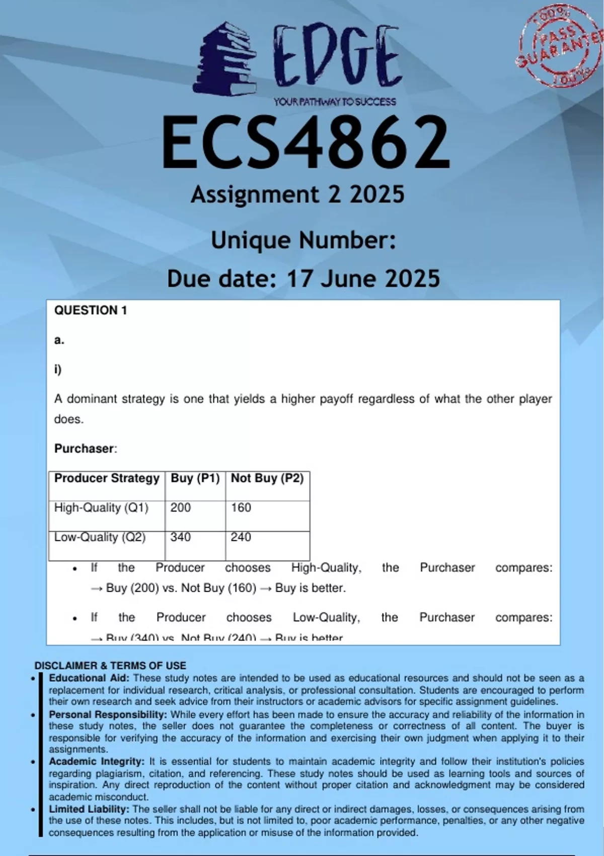 ECS4862 Assignment 2 (ANSWERS) 2025 - DISTINCTION GUARANTEED