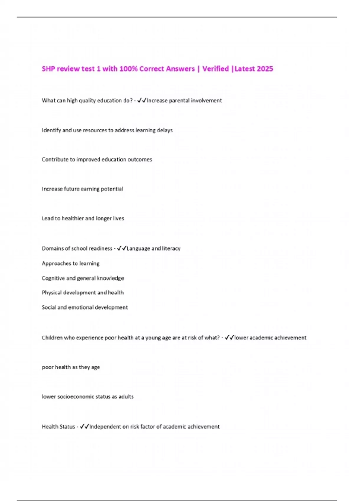 SHP review test 1 with 100% Correct Answers | Verified |Latest 2025