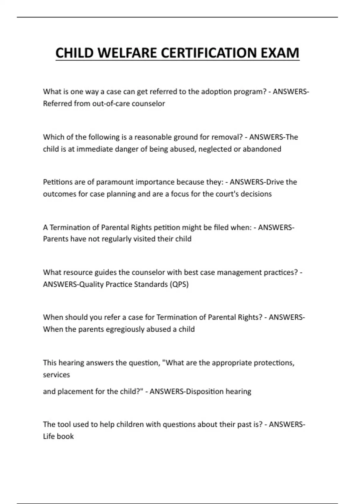 CHILD WELFARE CERTIFICATION EXAM QUESTIONS AND ANSWERS 2025