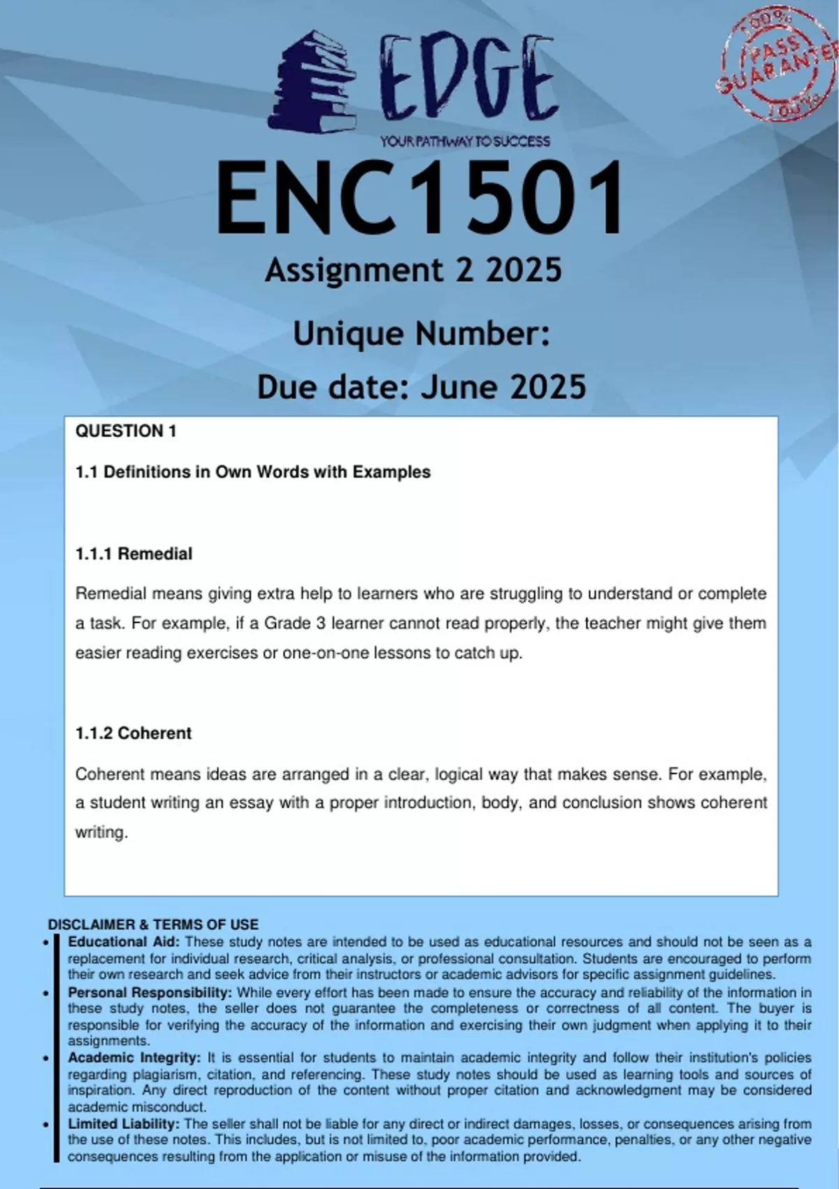 these study notes, the seller does not guarantee the completeness or correctness of all content. The buyer is