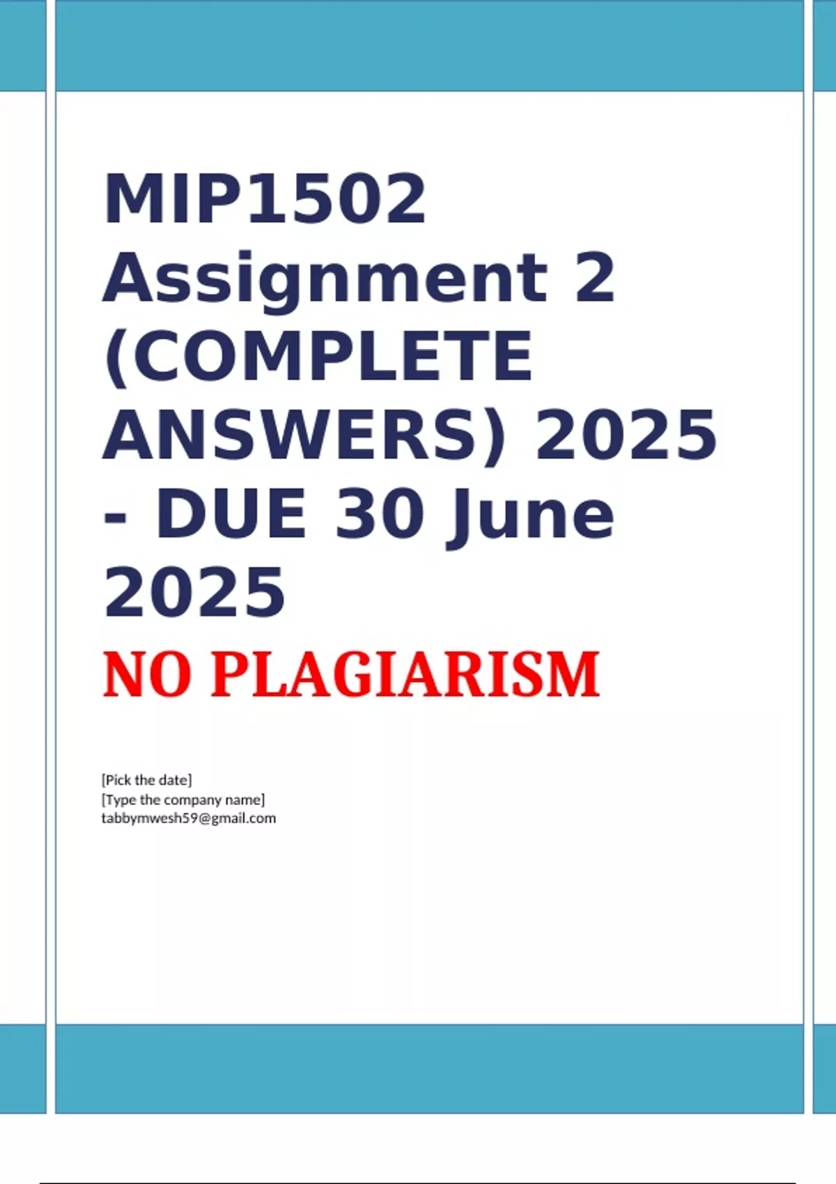 MIP1502 Assignment 2 (COMPLETE ANSWERS) 2025 - DUE 30 June 2025;