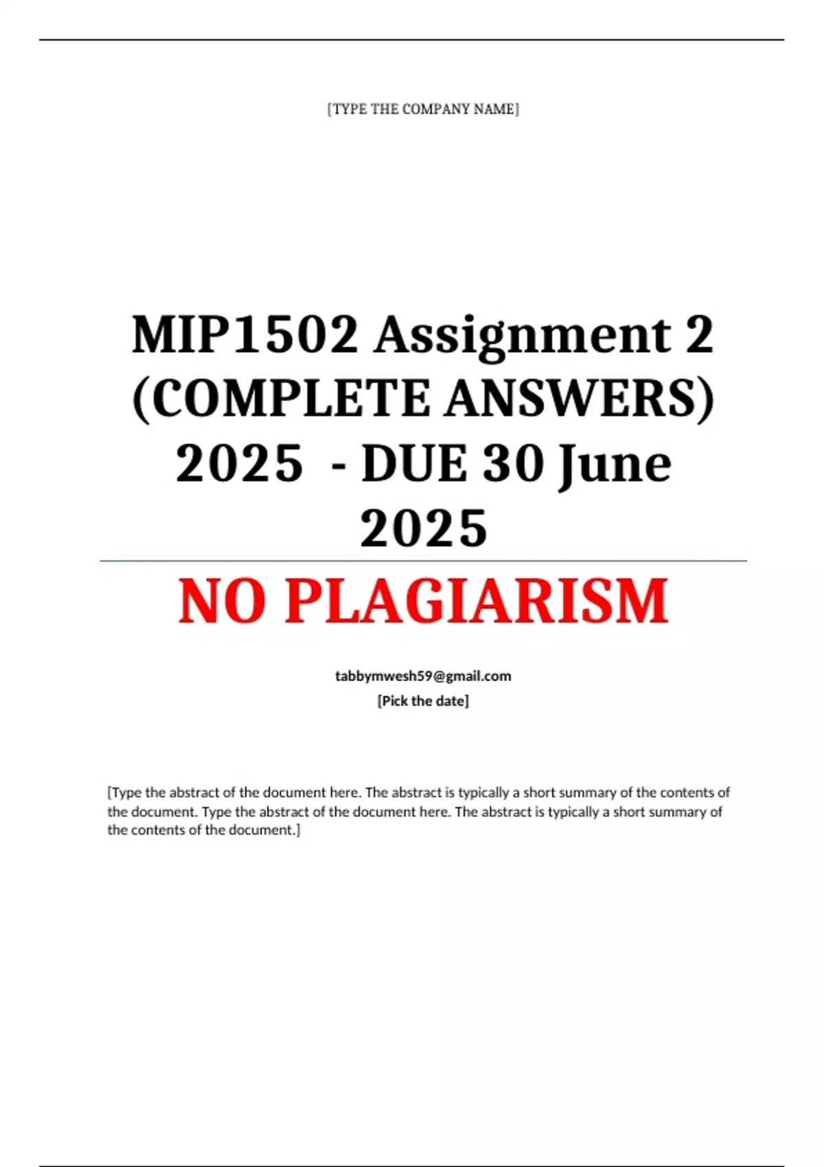 MIP1502 Assignment 2 (COMPLETE ANSWERS) 2025 - DUE 30 June 2025;