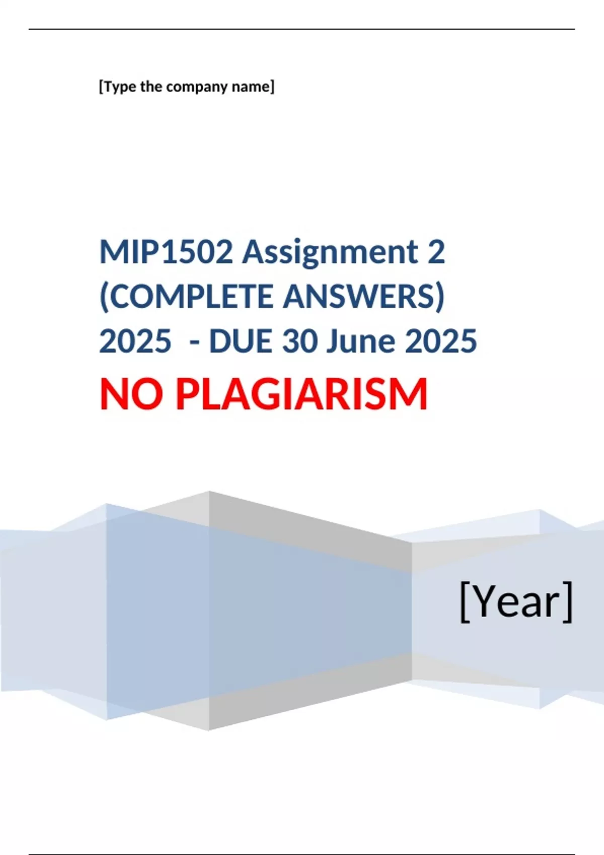 MIP1502 Assignment 2 (COMPLETE ANSWERS) 2025 - DUE 30 June 2025