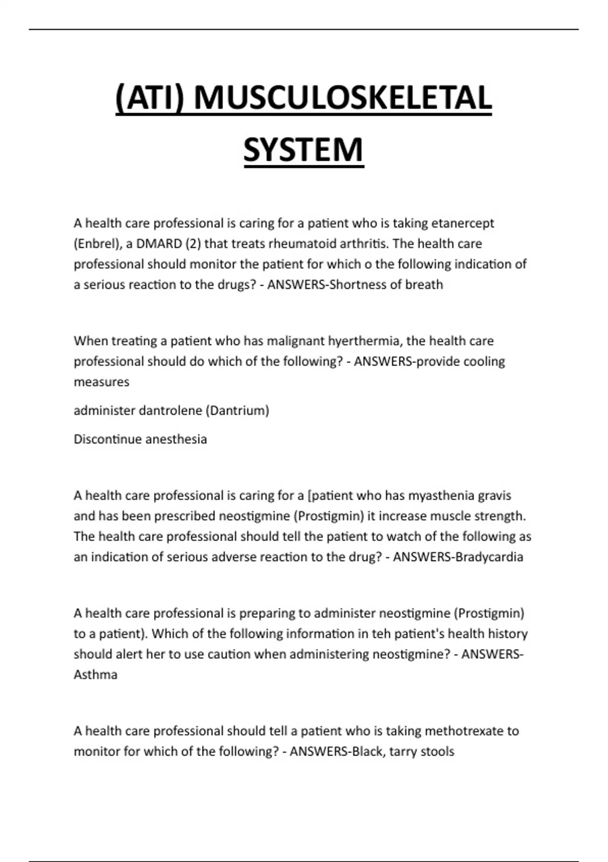 (ATI) MUSCULOSKELETAL SYSTEM QUESTIONS AND ANSWERS 2025