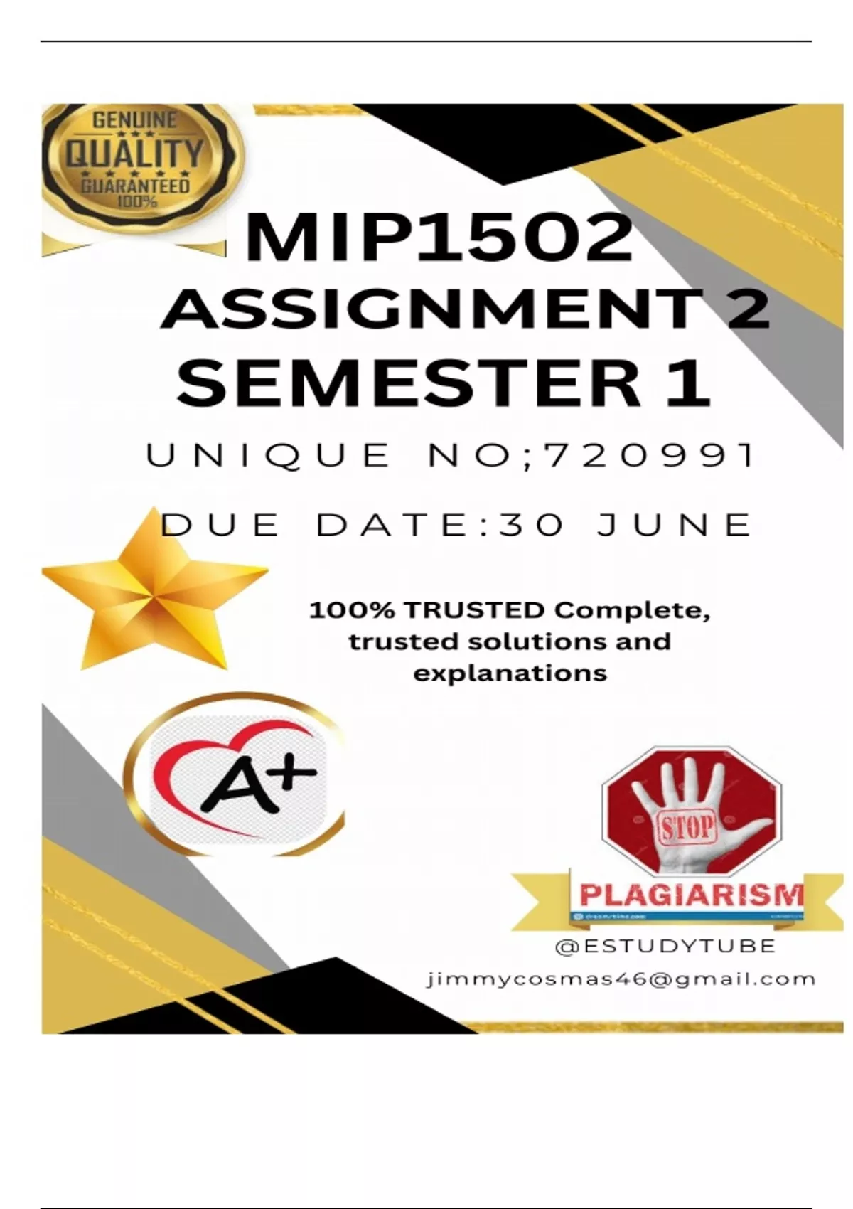 , MIP1502 Assignment 2 (COMPLETE ANSWERS)