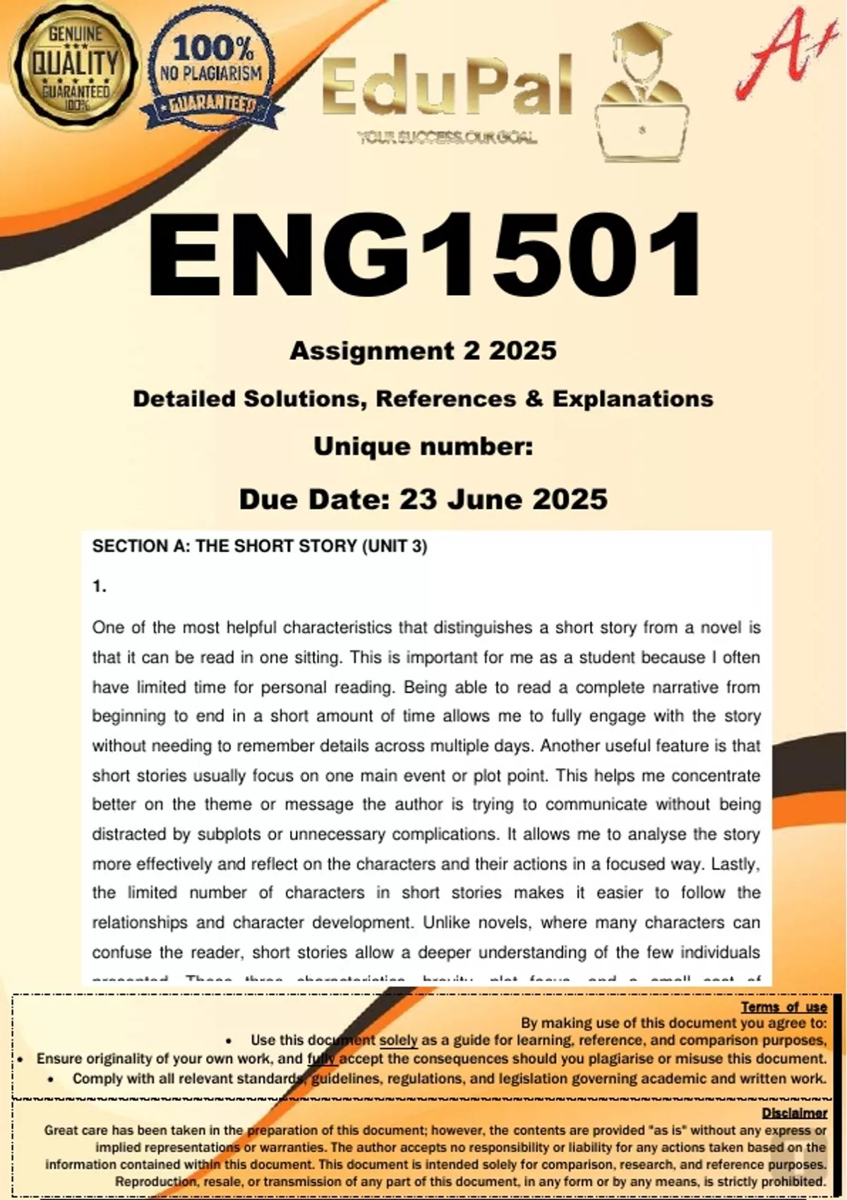ENG1501 Assignment 2 (COMPLETE ANSWERS) 2025 - DUE 23 June 2025
