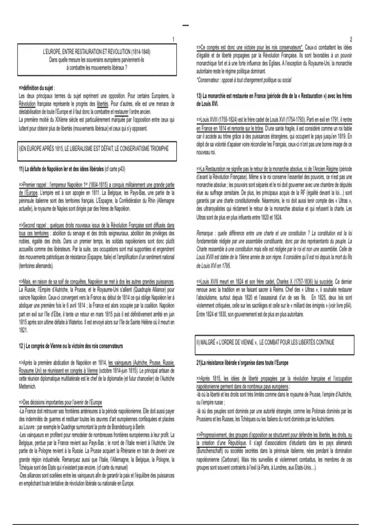 Cours complet du prof révolution et restauration première histoire Parfait pour réviser un contrôle