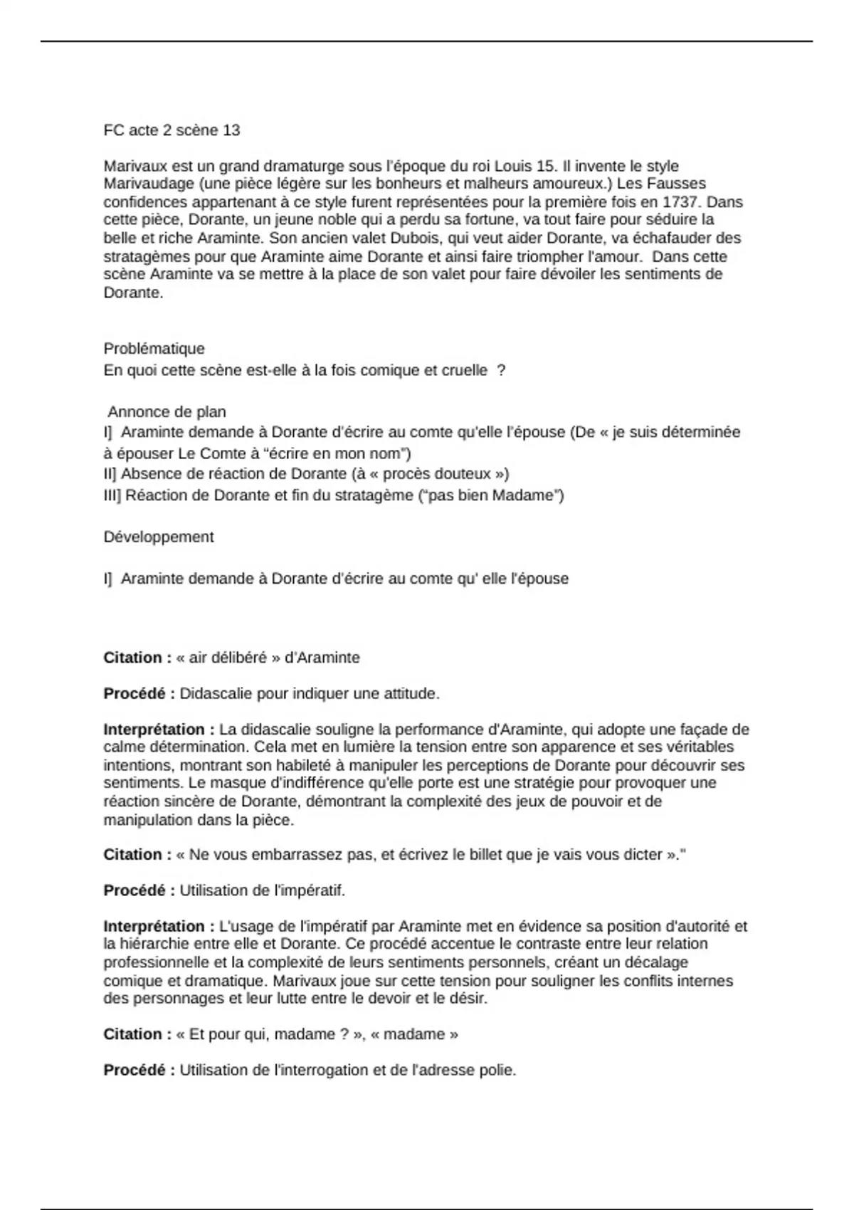 Interprétation : En interpellant directement Dorante, Araminte tente de briser sa rêverie et
