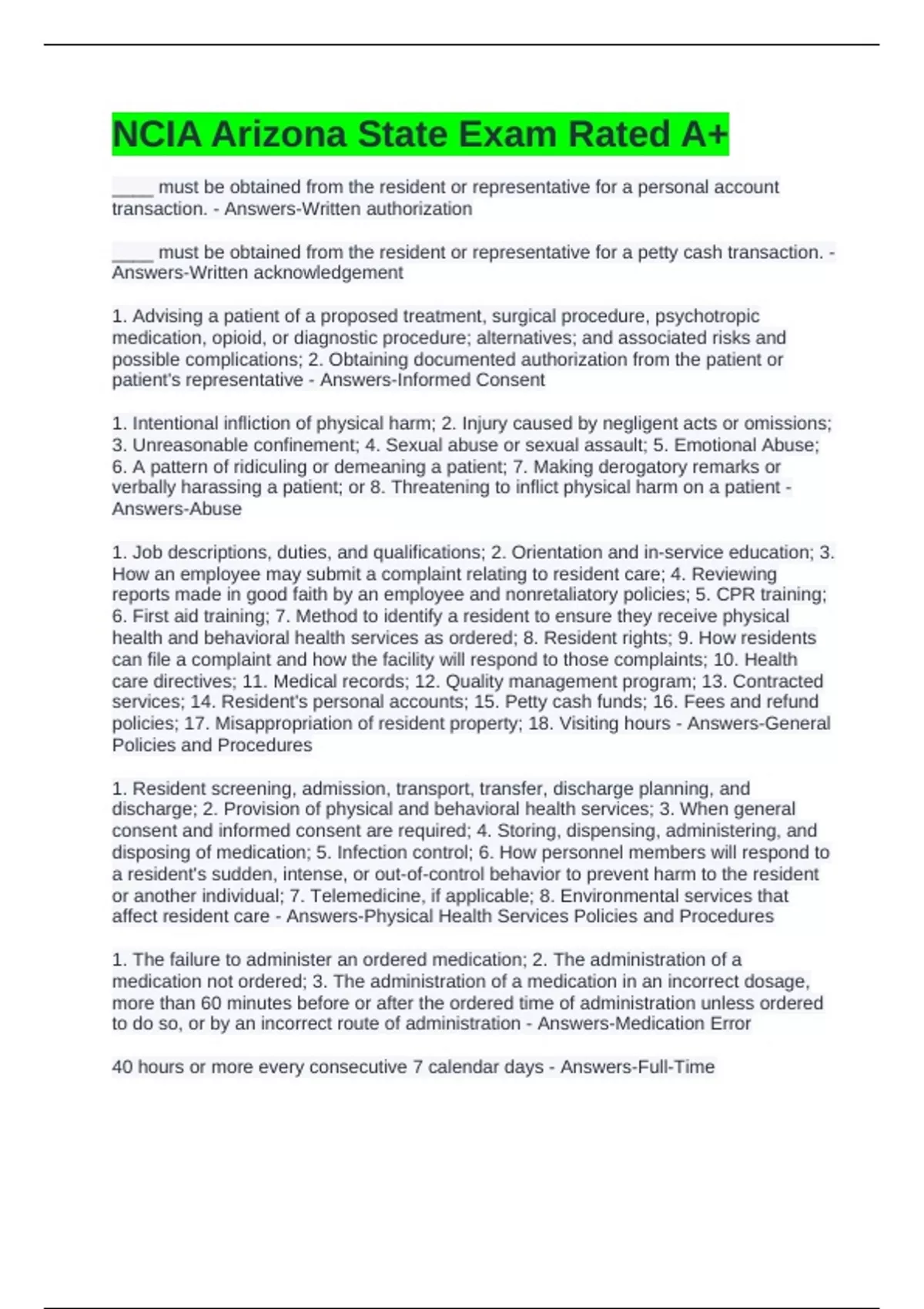 NCIA Arizona State Exam Rated A+