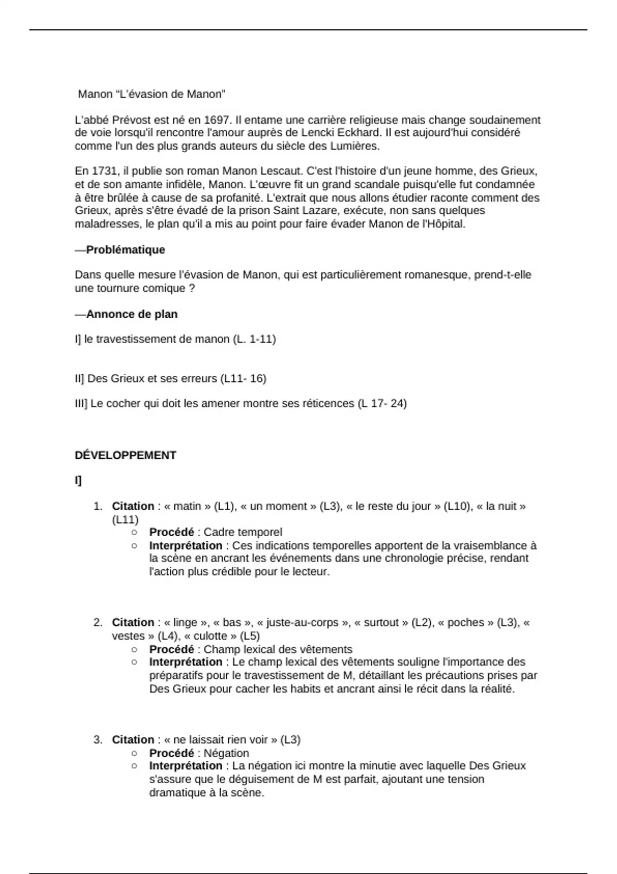 Citation : « Je laissai la mienne à Manon. » (L10)