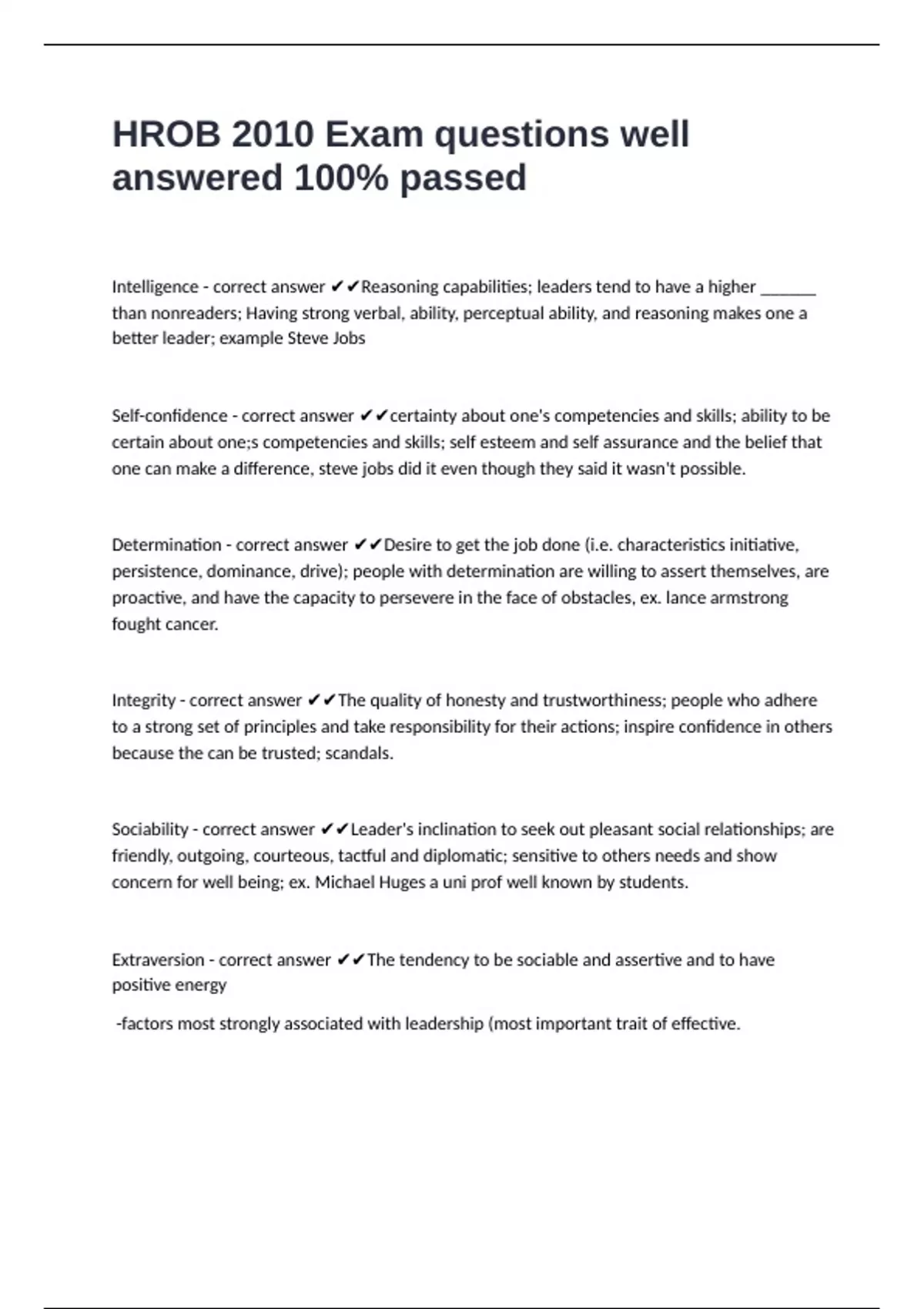 Sociability - correct answer ✔✔Leader's inclination to seek out pleasant social relationships; are