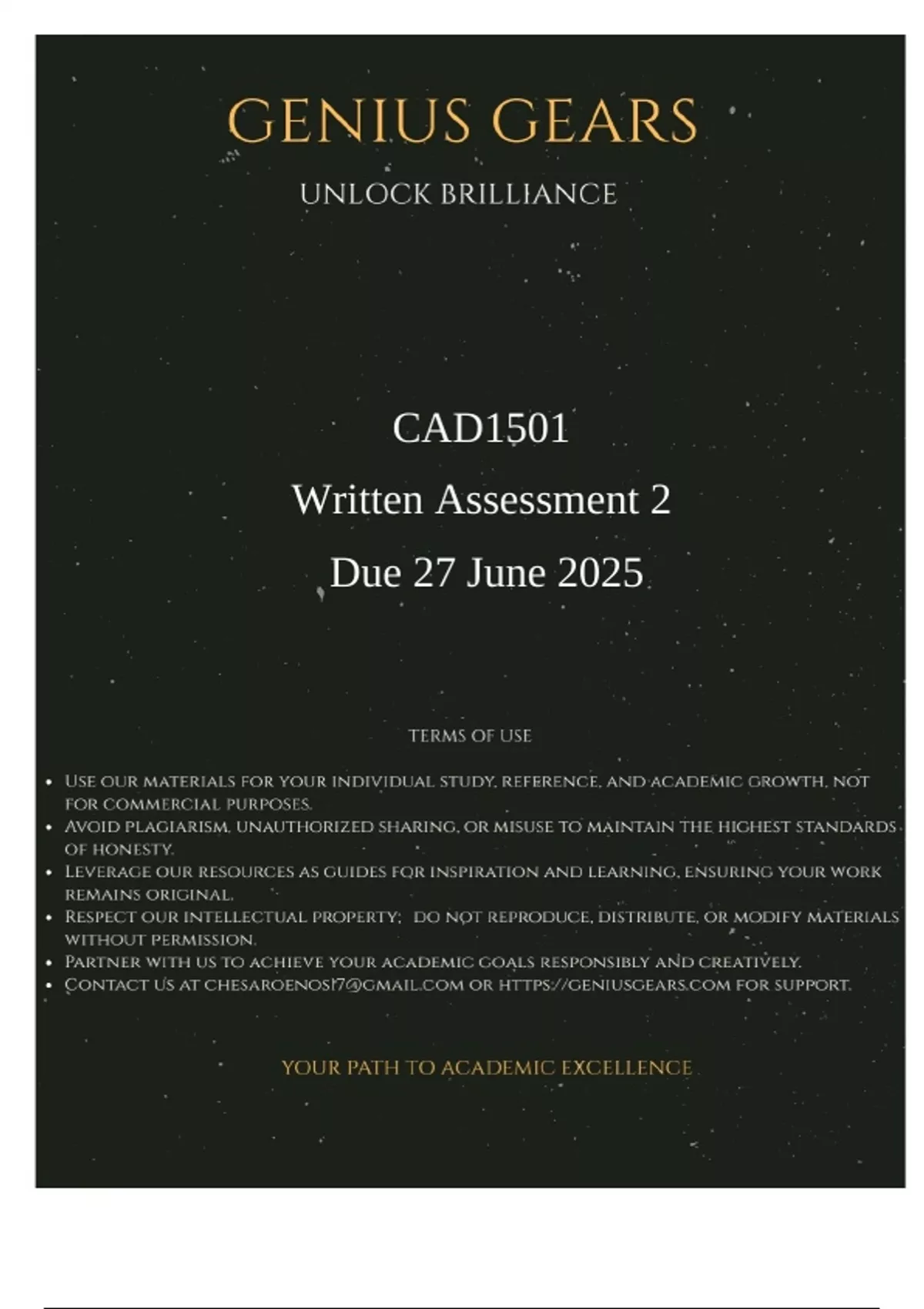 CAD1501 Written Assessment 2 Due 27 June 2025.