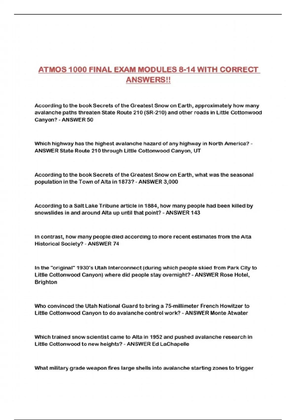 ATMOS 1000 FINAL EXAM MODULES 8-14 WITH CORRECT ANSWERS!!...