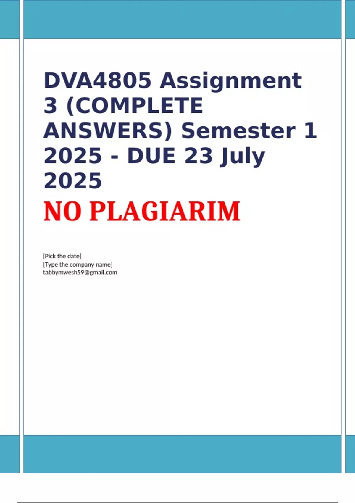 DVA4805 Assignment 3 (COMPLETE ANSWERS) Semester 1 2025 - DUE 23