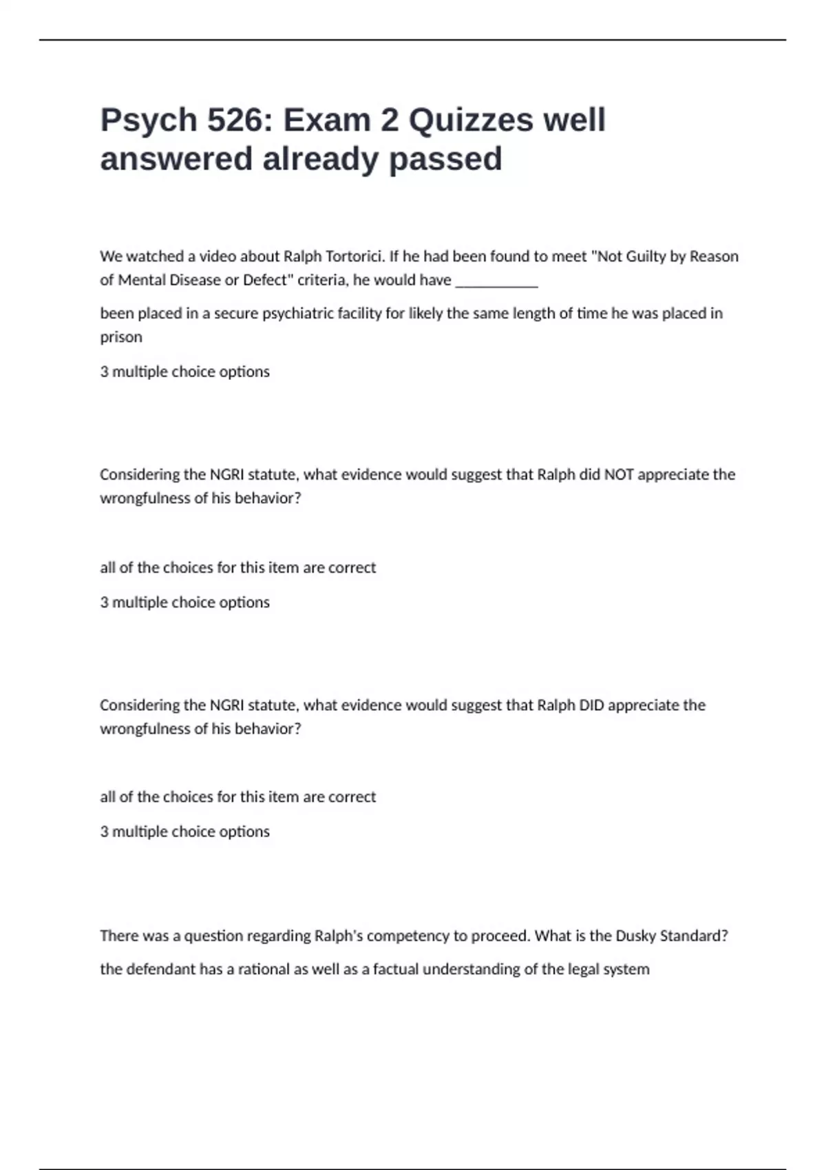 We watched a video about Ralph Tortorici. If he had been found to meet "Not Guilty by Reason