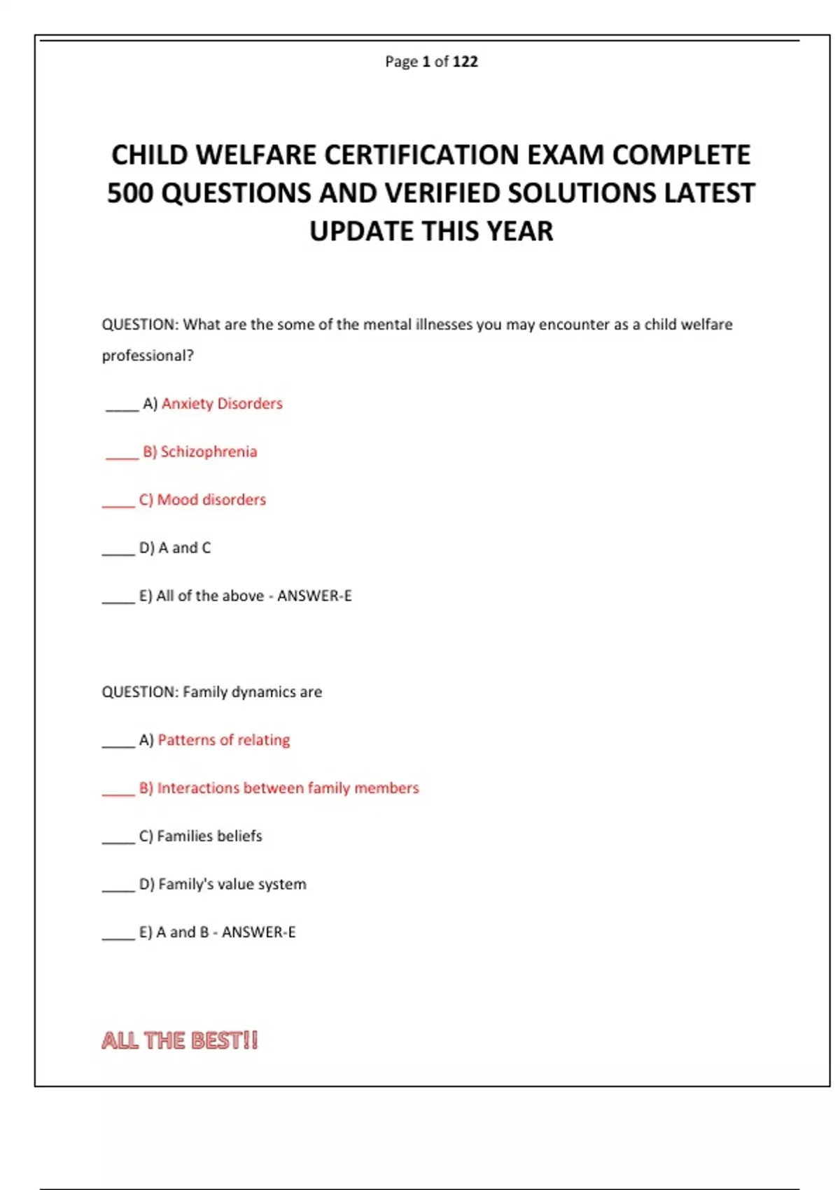 CHILD WELFARE CERTIFICATION EXAM COMPLETE 500 QUESTIONS AND VERIFIED SOLUTIONS LATEST UPDATE THIS YEAR