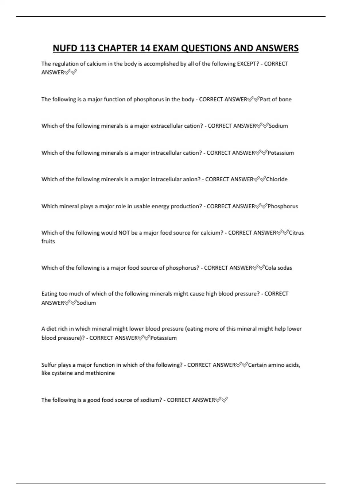 Which of the following minerals is a major extracellular cation? - CORRECT ANSWER✅✅Sodium