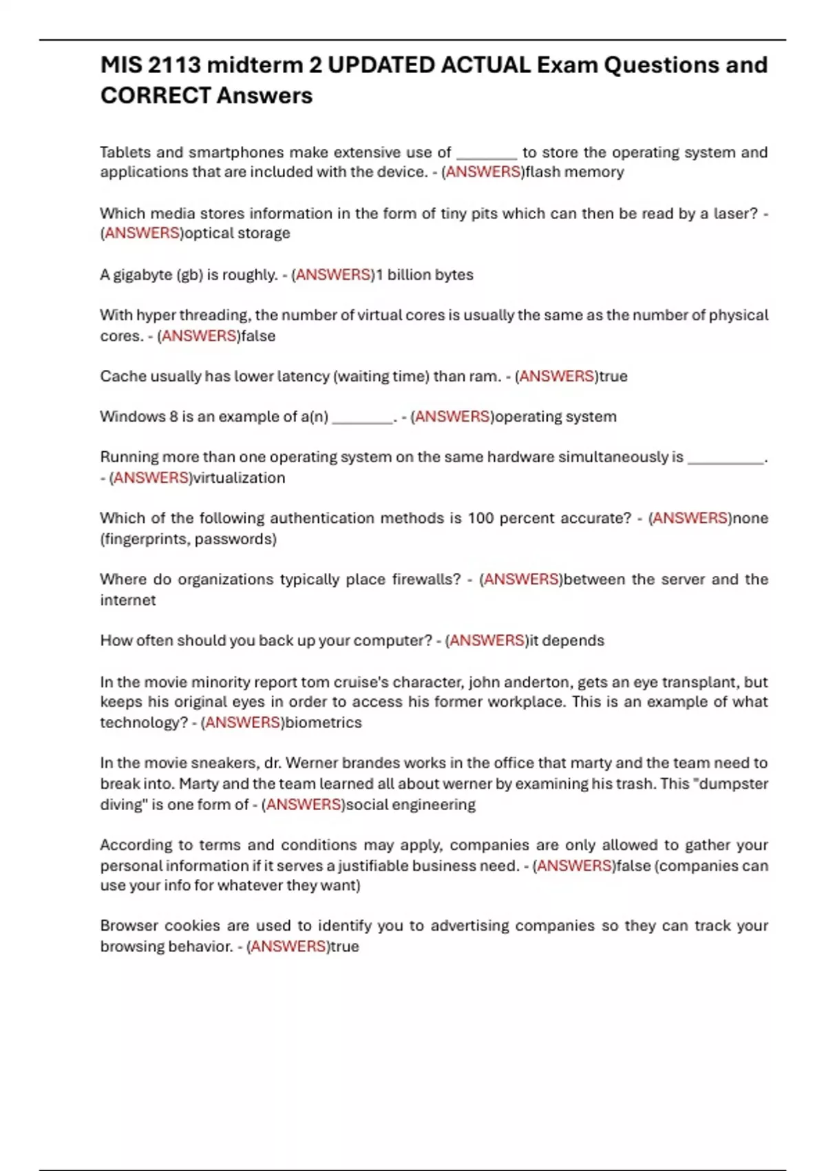 MIS 2113 midterm 2 UPDATED ACTUAL Exam Questions and