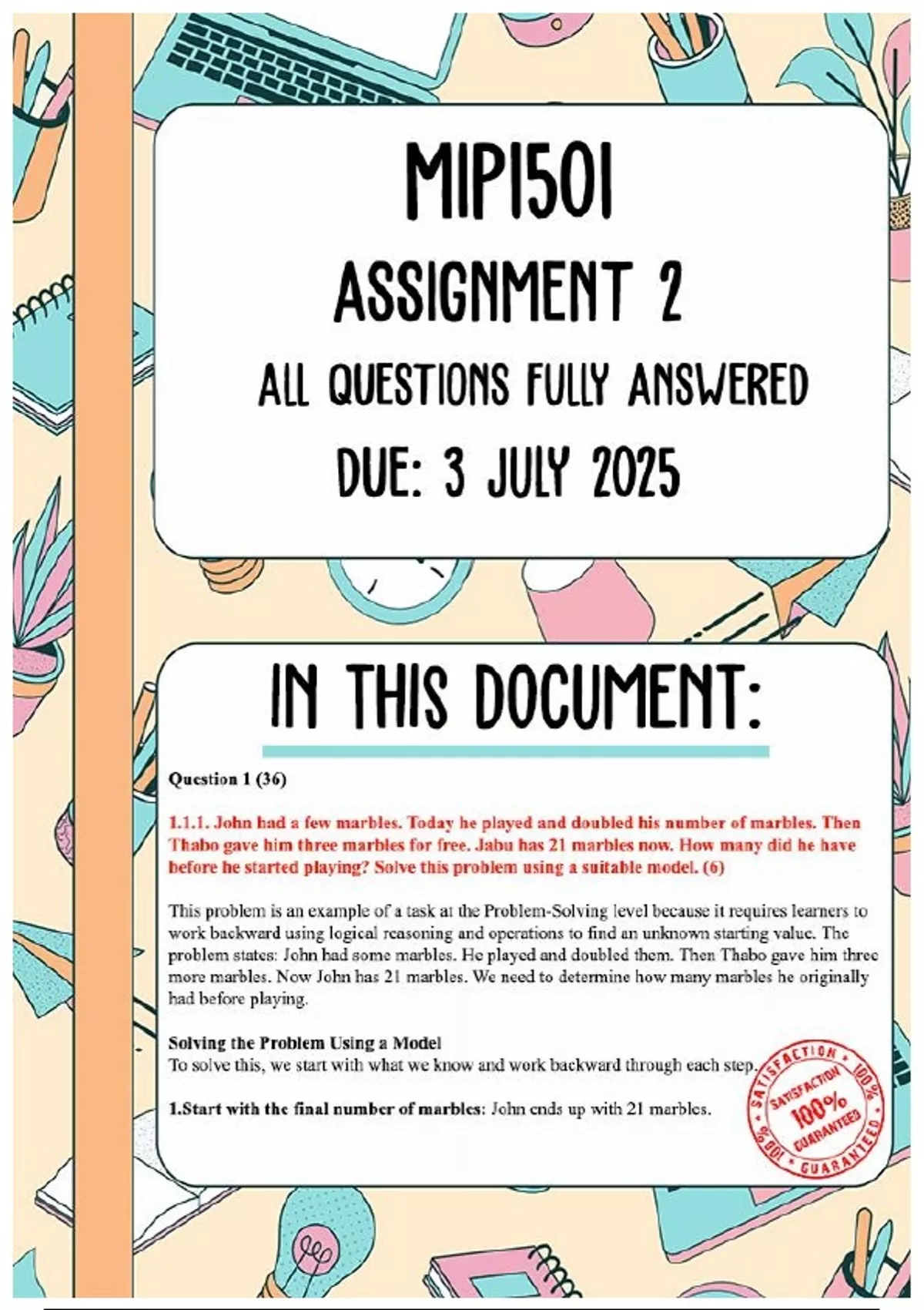 MIP1501 Assignment 2 Memo | Due 3 July 2025. Step-by-Step Calculations Provided. This document contains a fully answered assignment with complete answers to all questions and tasks. Every section is carefully completed to ensure a guaranteed pass. Perfect for guaranteed pass, high marks, and peace of mind.