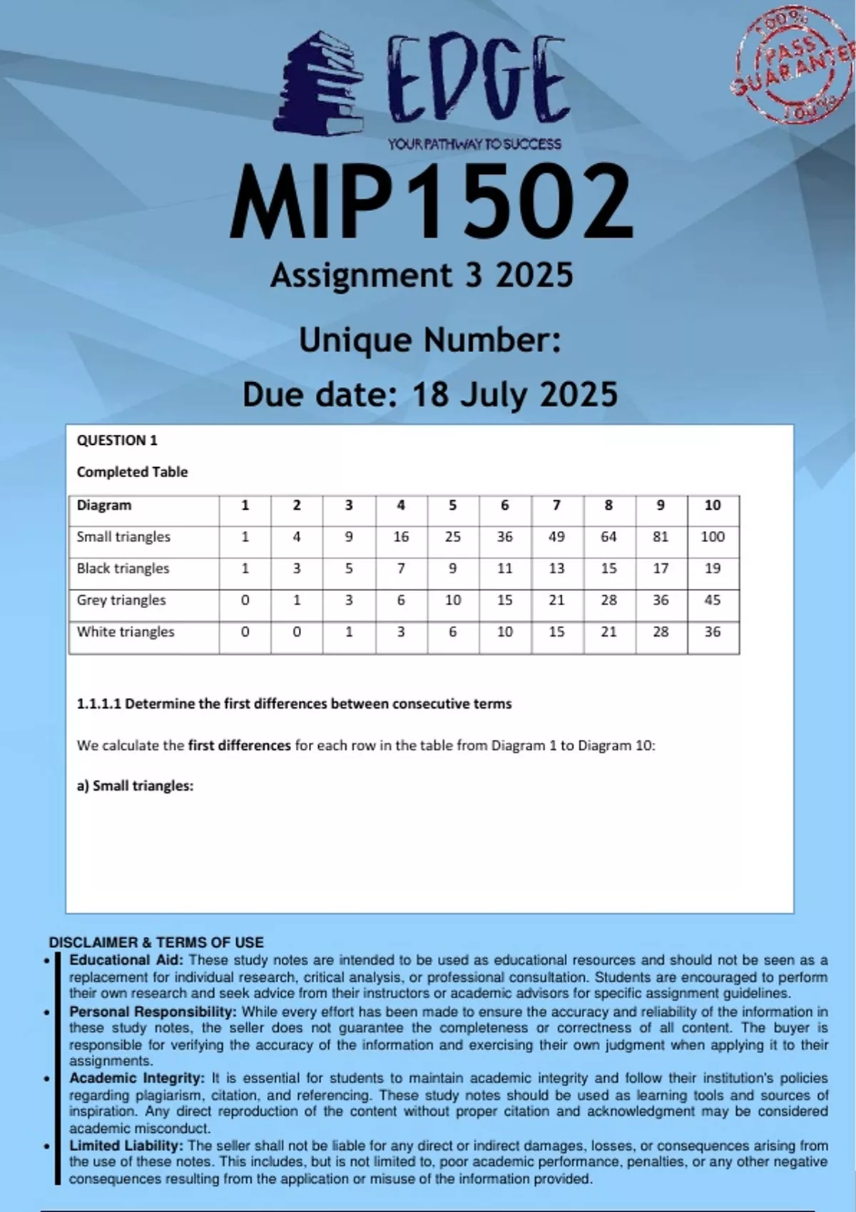 1.1.1.1 Determine the first differences between consecutive terms