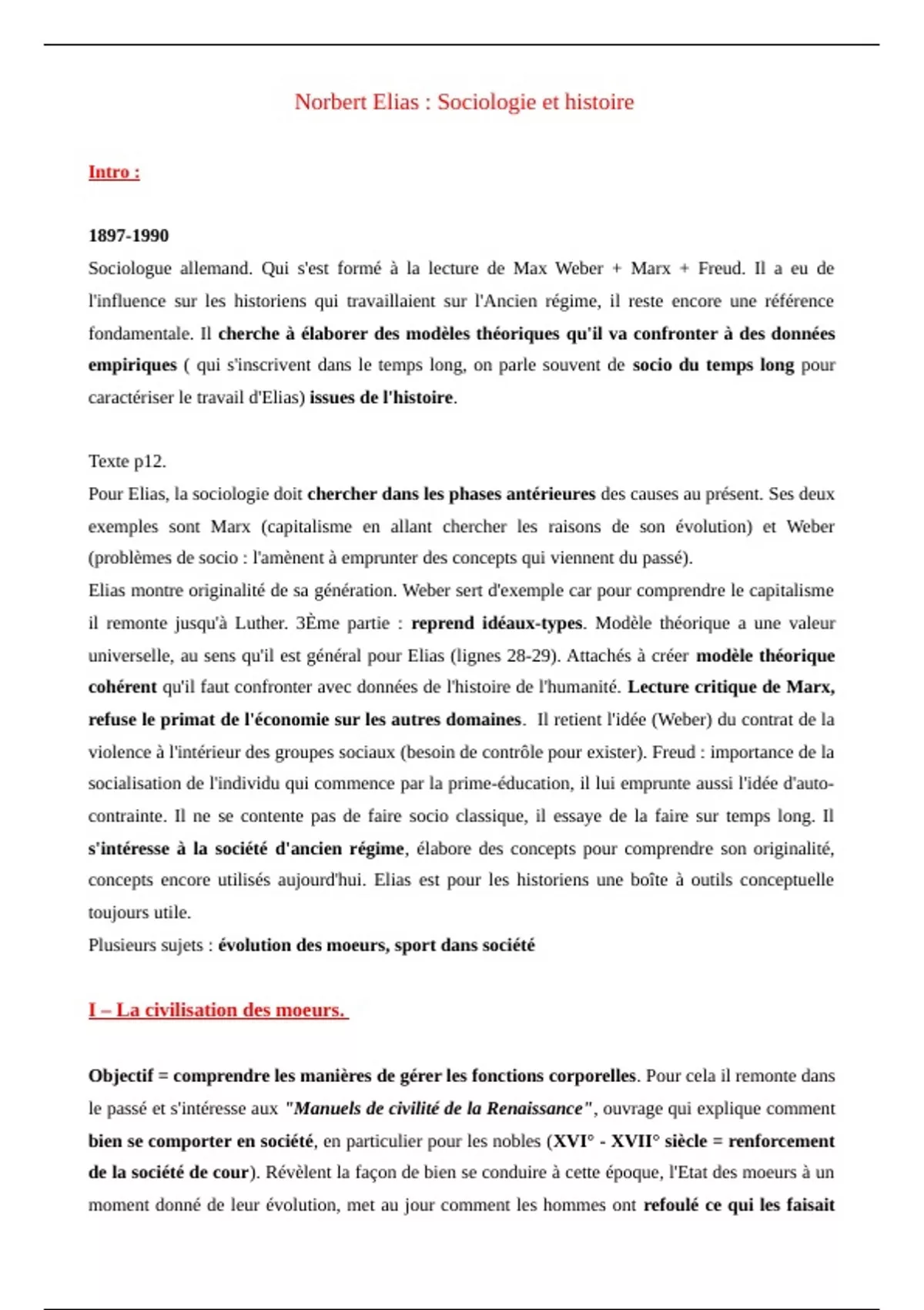 XXème, pour comprendre ces étapes Elias est allé jusqu'à la Renaissance avec les Manuels de