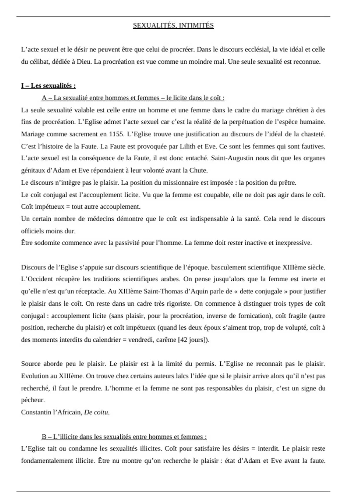 L’Eglise tait ou condamne les sexualités illicites. Coît pour satisfaire les désirs = interdit. Le plaisir reste