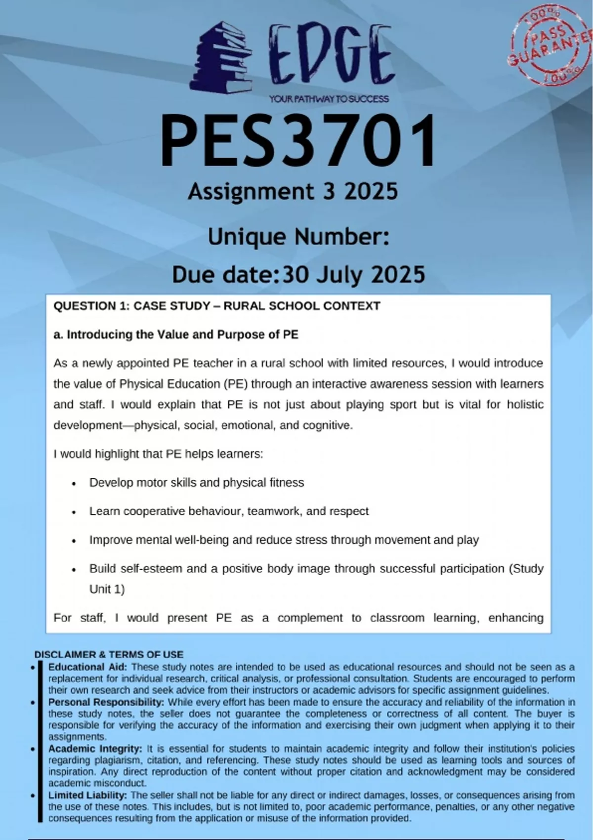 PES3701 Assignment 3 (ANSWERS) 2025 - DISTINCTION GUARANTEED