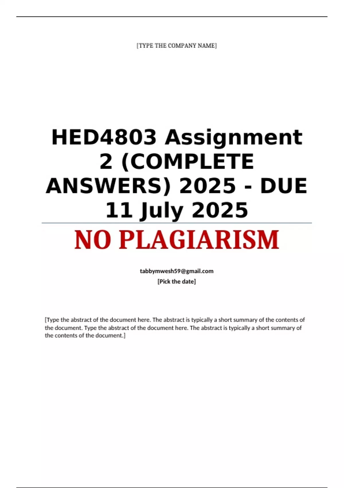 HED4803 Assignment 2 (QUALITY ANSWERS) 2025..