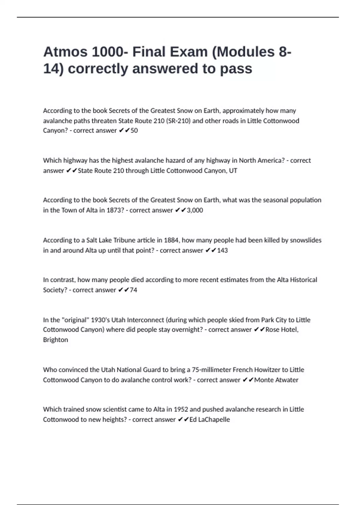 Cottonwood Canyon to do avalanche control work? - correct answer ✔✔Monte Atwater