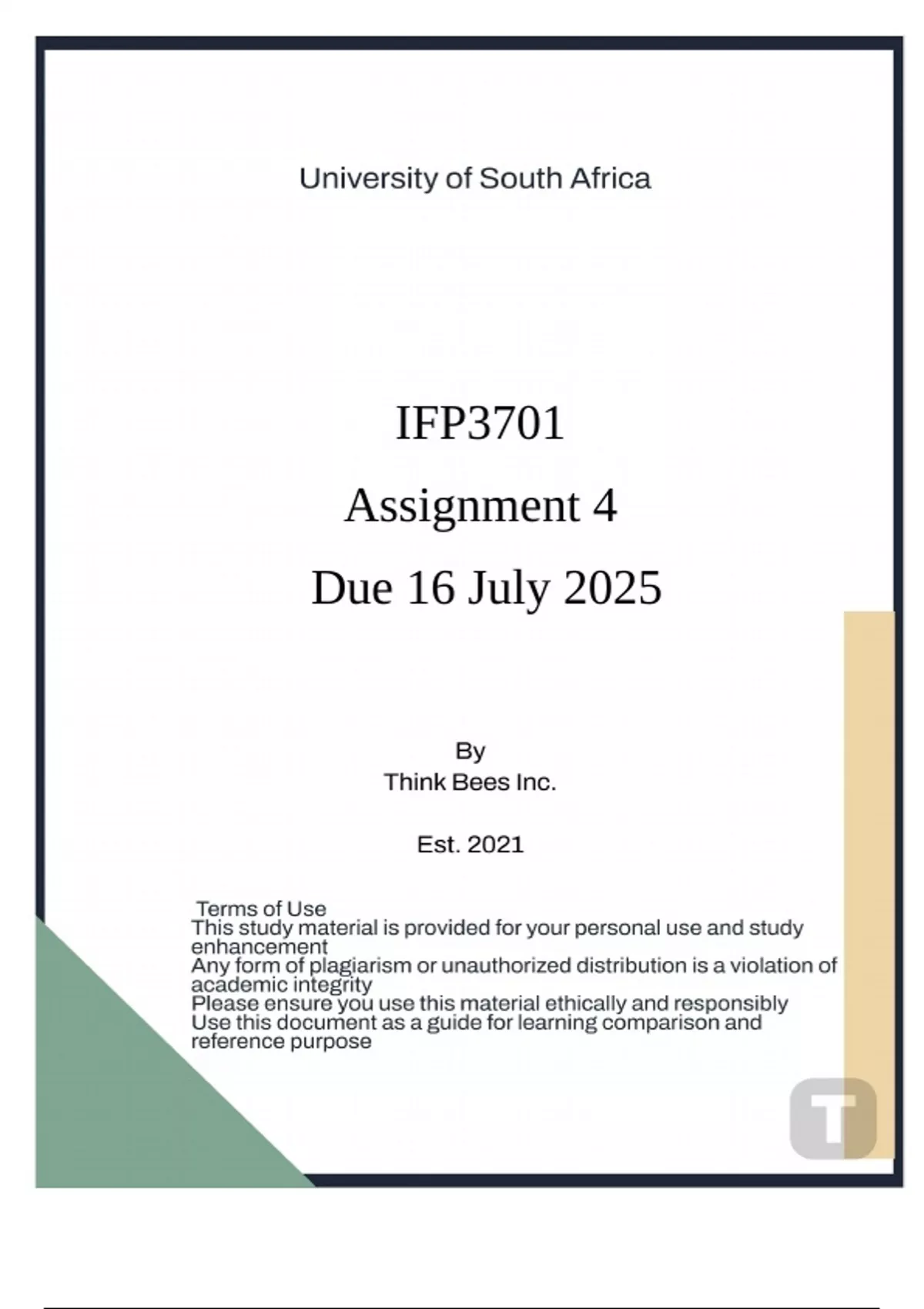 IFP3701 Assignment 4 (Comprehensive Response) Due 16 July 2025.