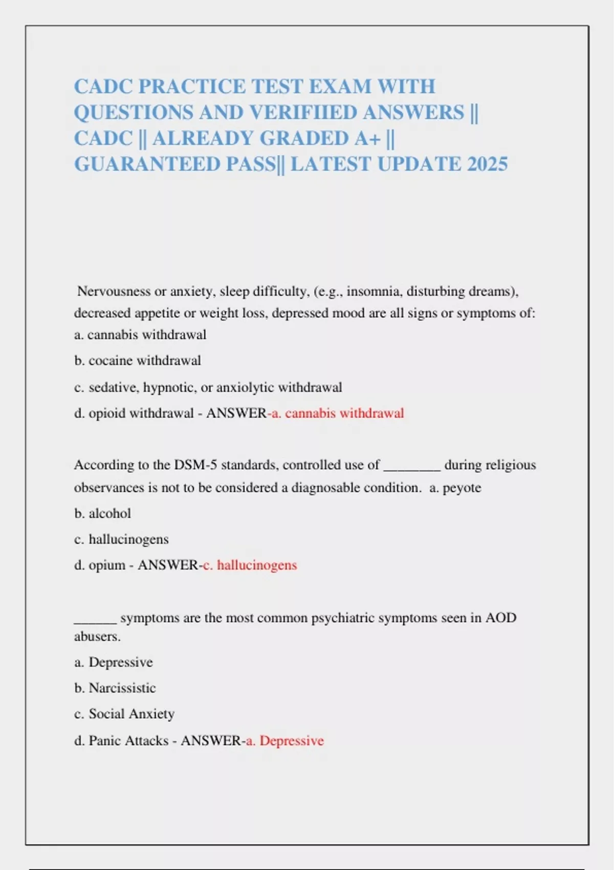 d. opioid withdrawal - ANSWER-a. cannabis withdrawal