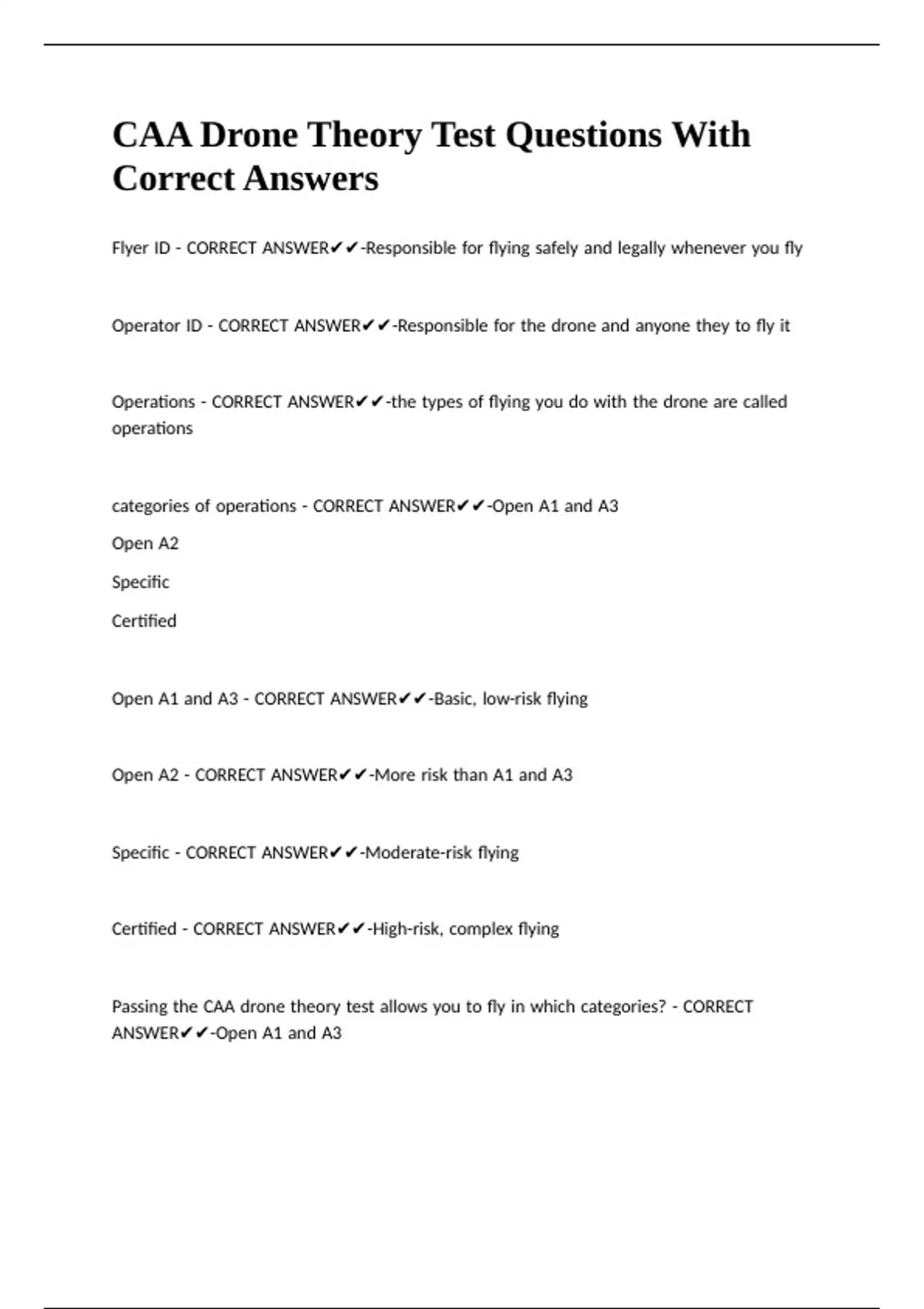 CAA Drone Theory Test Questions With Correct Answers