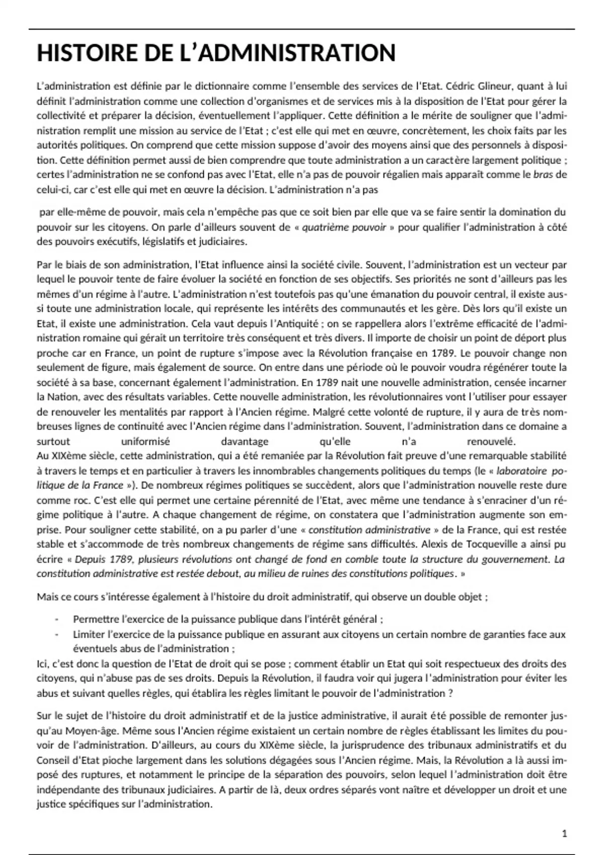 Mais ce cours s’intéresse également à l’histoire du droit administratif, qui observe un double objet ;