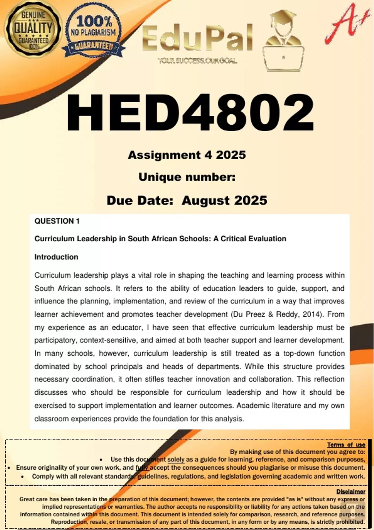 HED4802 Assignment 4 (COMPLETE ANSWERS) 2025 - DUE August 2025