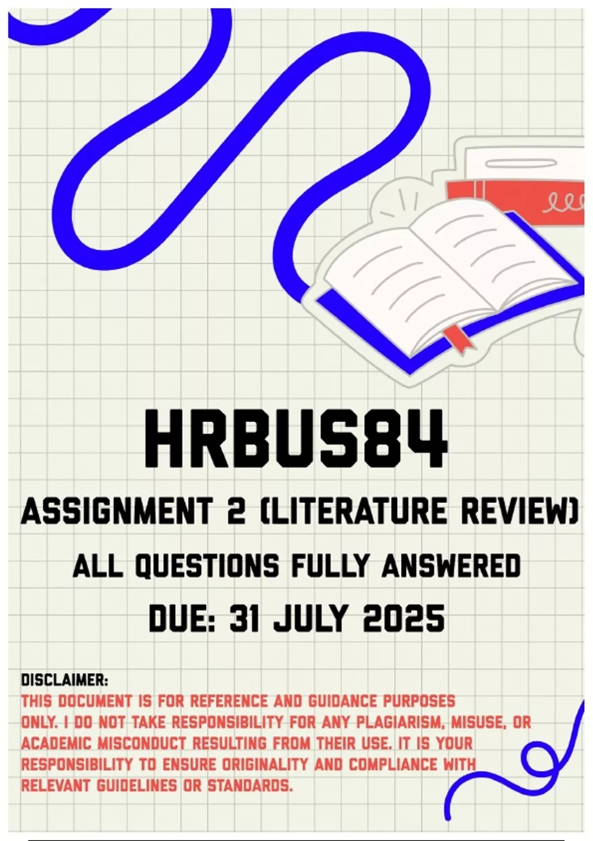 HRBUS84 Assignment 2 (Literature Review) Memo | Due 31 July 2025