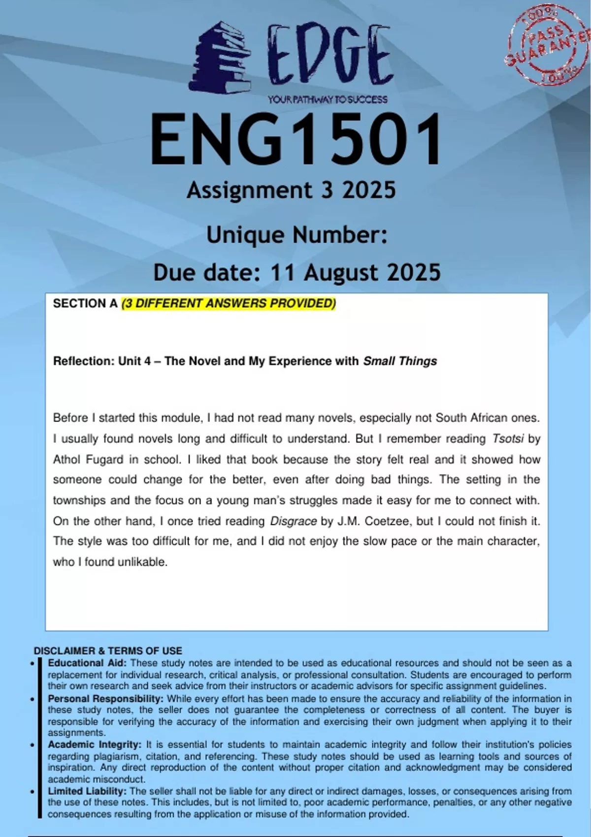 ENG1501 Assignment 3 (ANSWERS) 2025 - DISTINCTION GUARANTEED